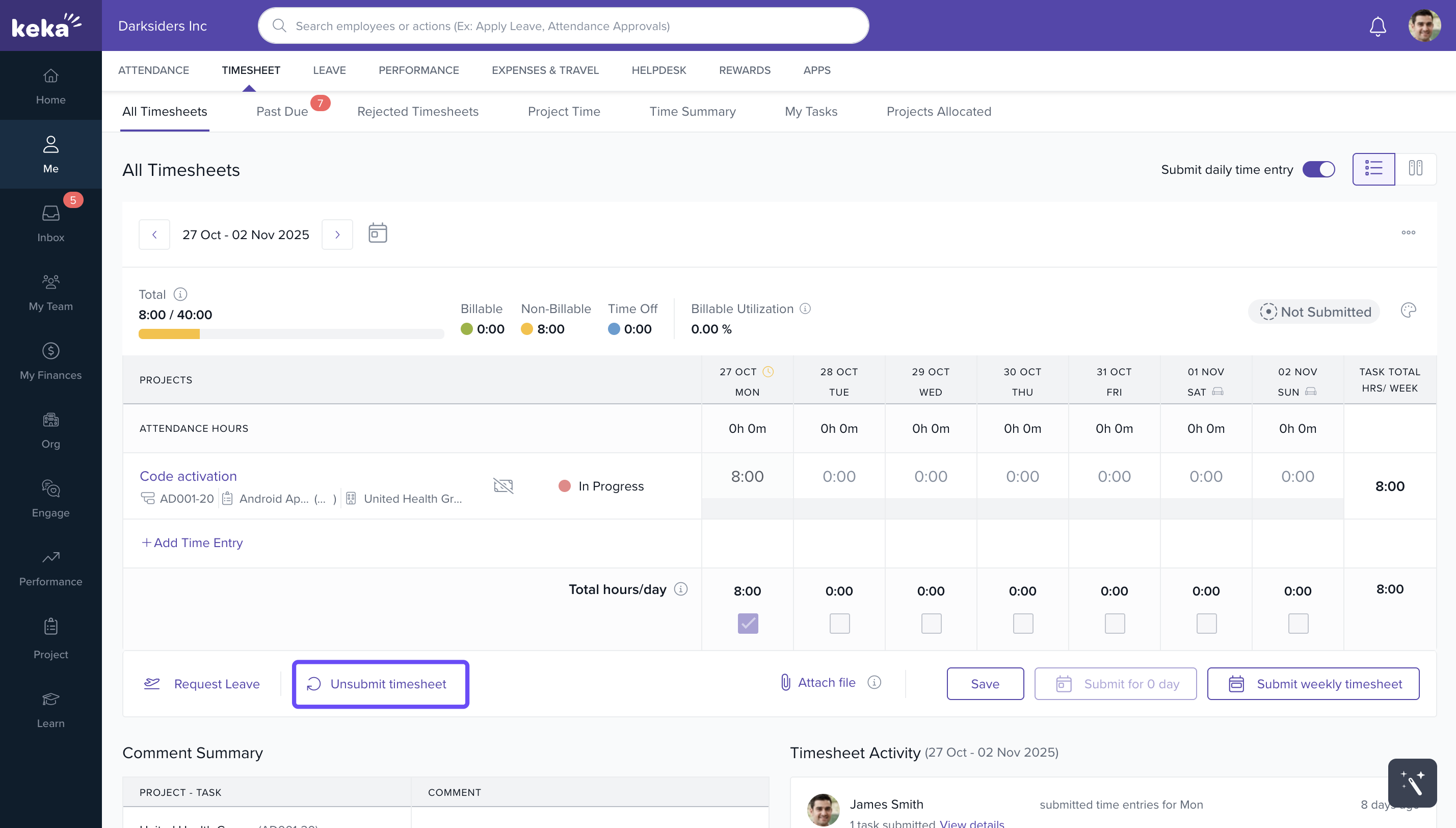 - Once an employee submits their timesheet, they will see an option labeled "Unsubmit Timesheet."
