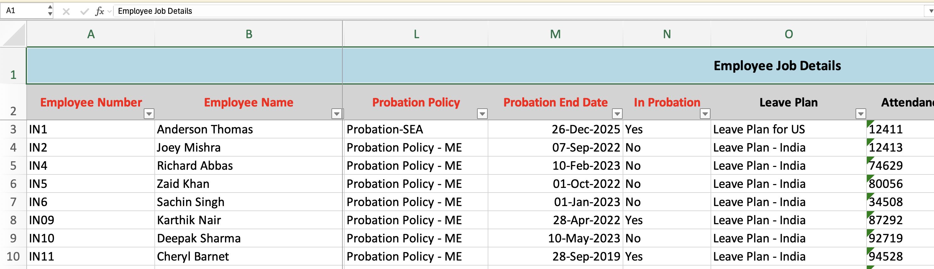 In the sheet, update the Probation End Date column for all employees whose probation you want to close.