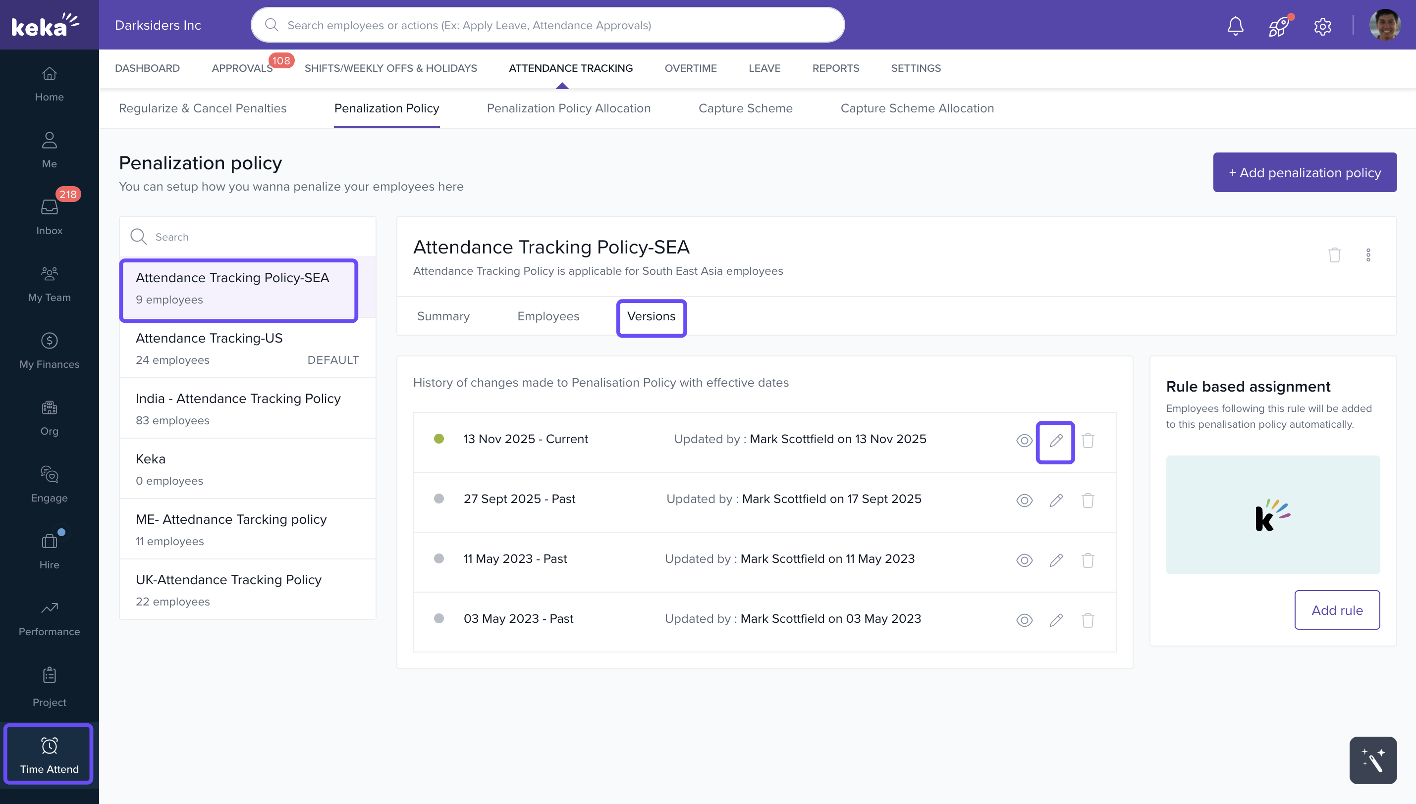 - Click the Pen (Edit) icon to modify the policy.