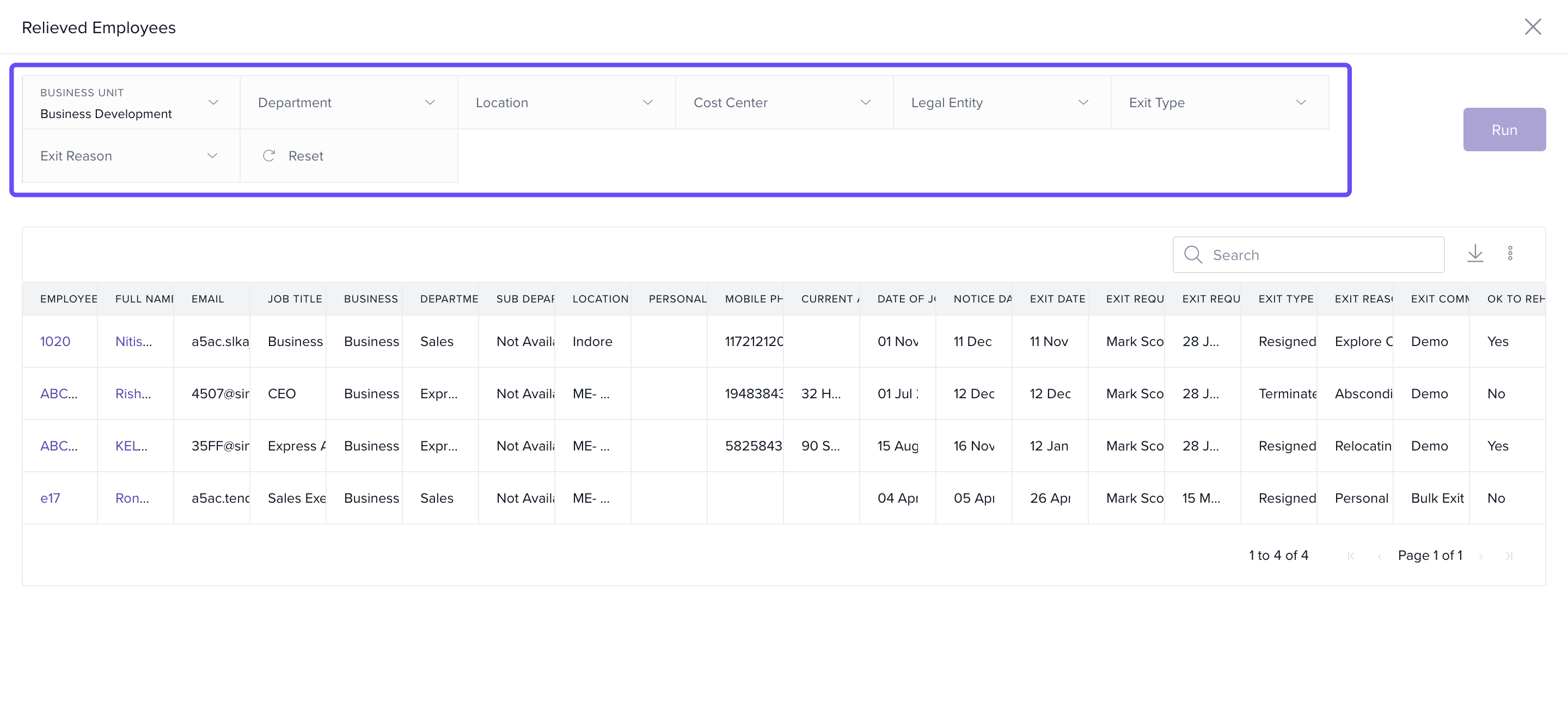 - Use additional filters such as Department, Location, Exit Type, or Exit Reason to customize the report as per your requirement.