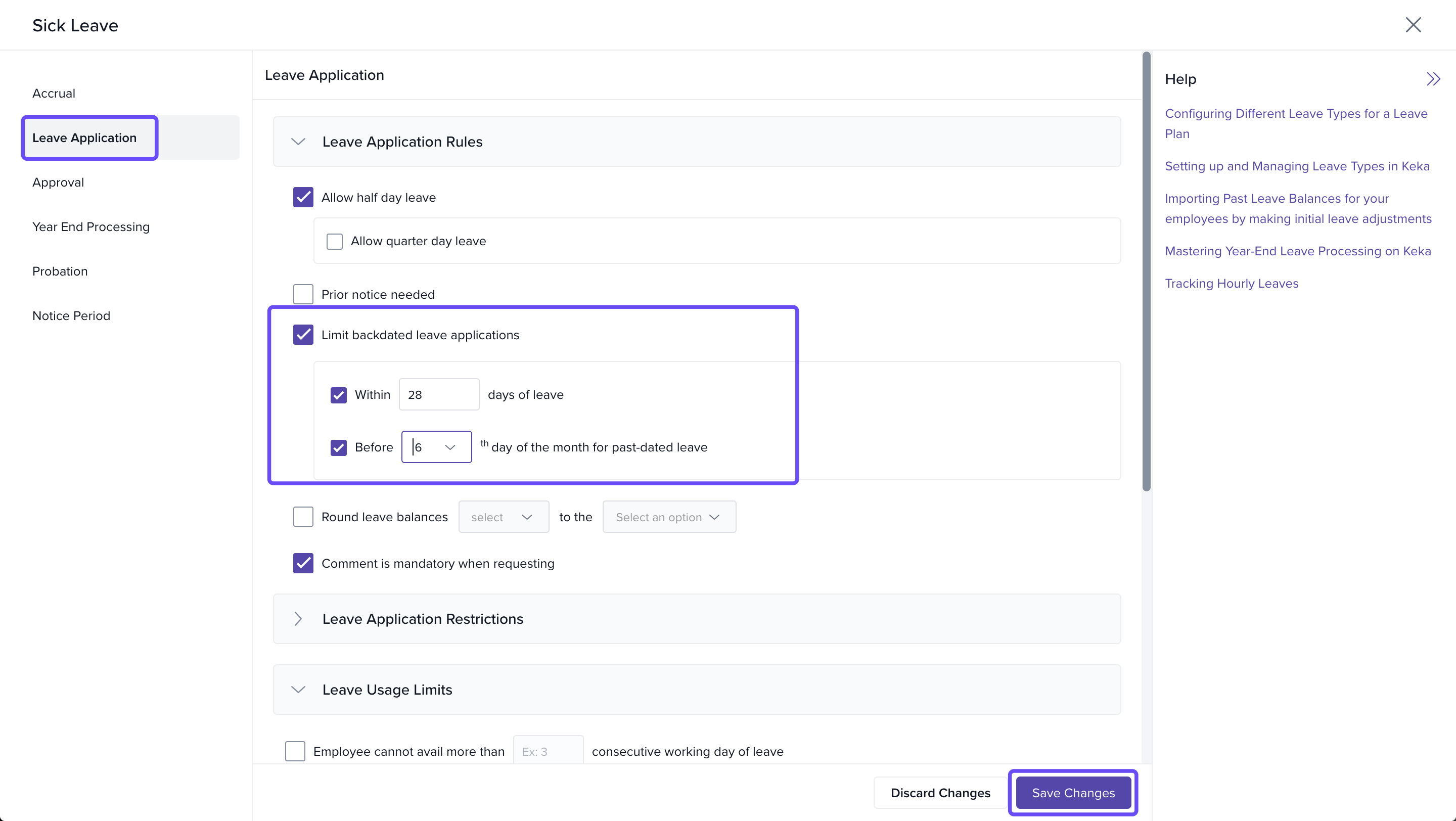 - Check the option "limit backdated leave applications".