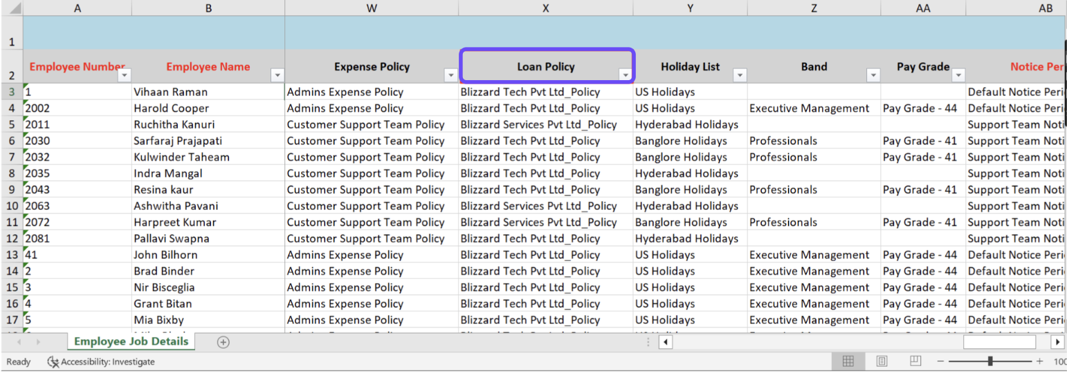 Steps to Assign a Loan Policy to Employees in Bulk: