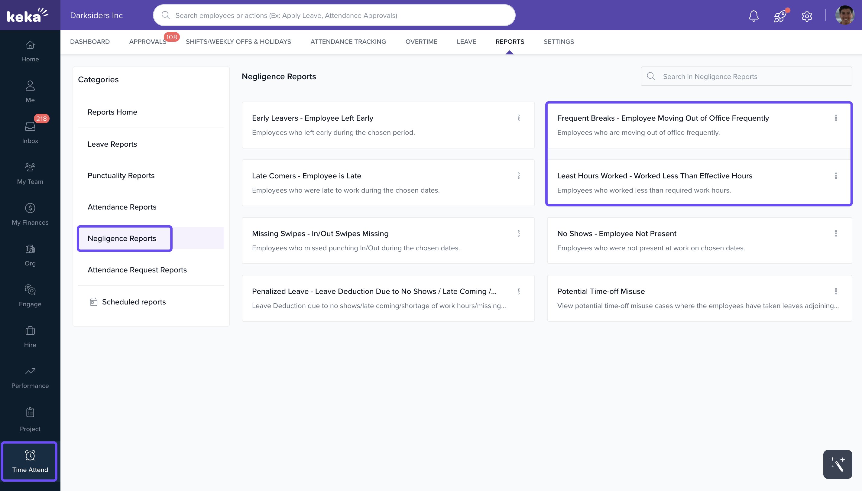 - Go to Time Attend > Reports > Negligence Reports.