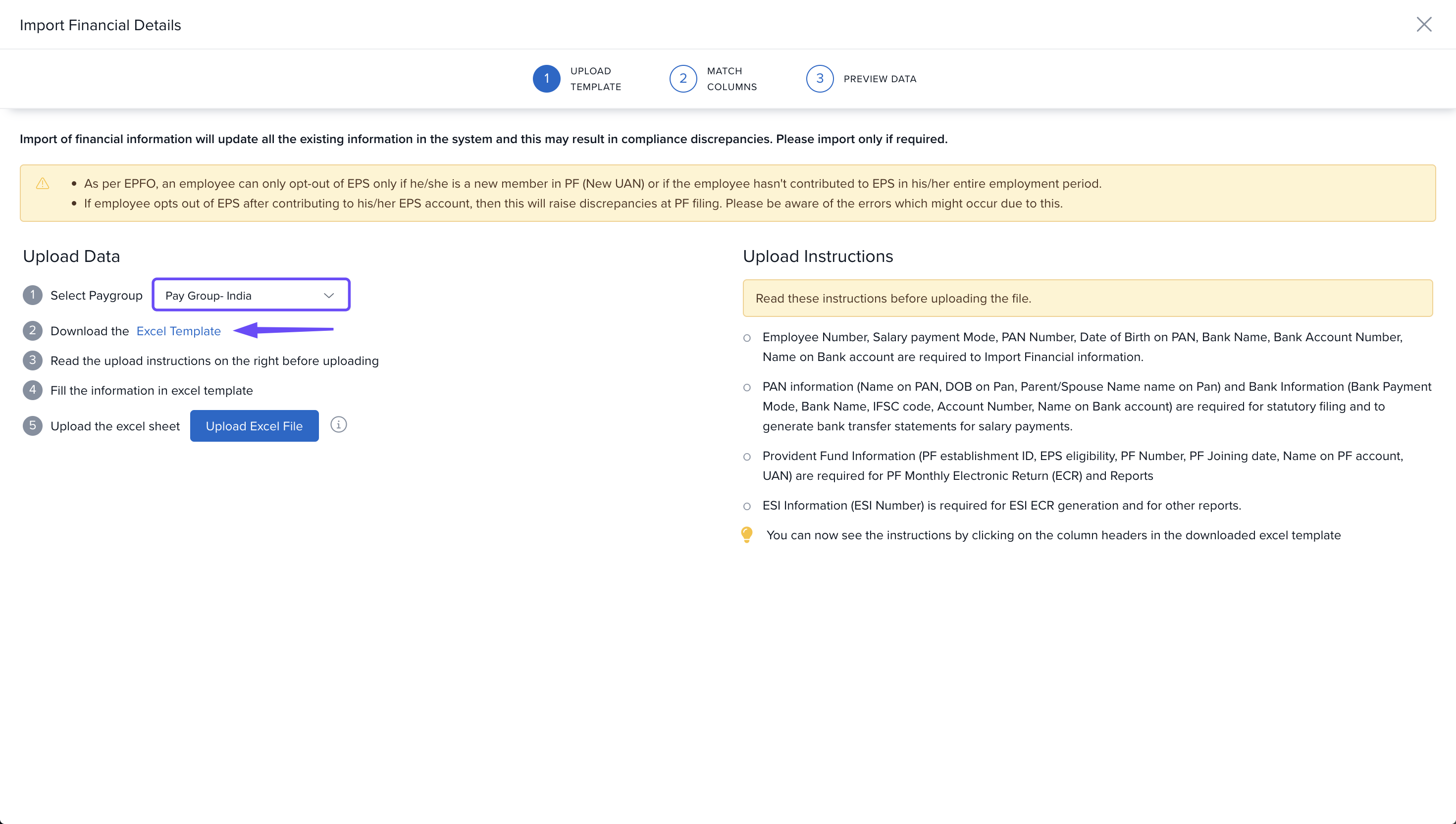 Select the relevant Pay Group and Download the Excel Template.
