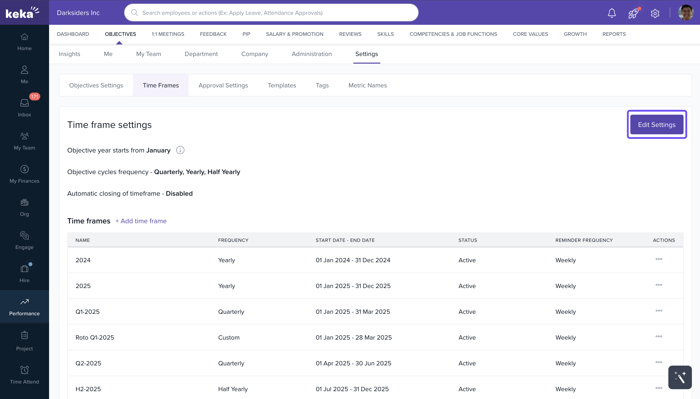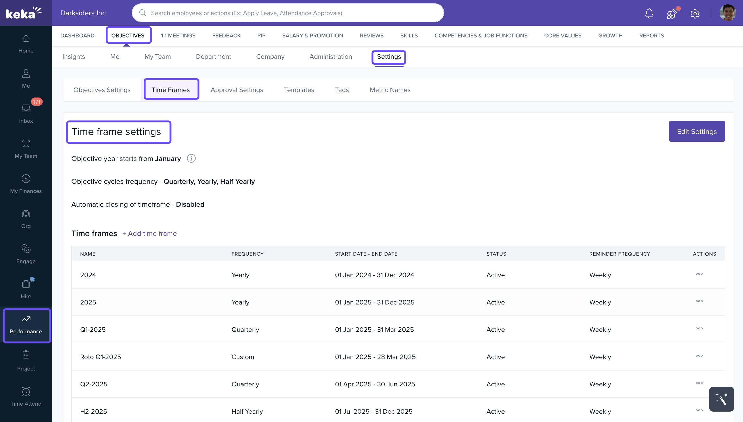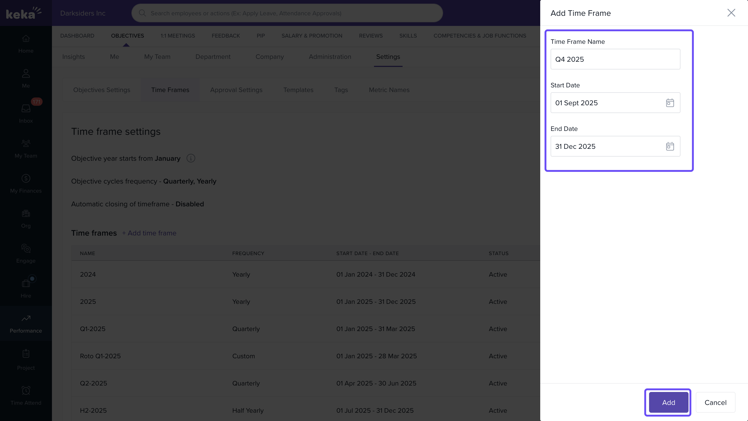 You can now manage both automated and ad-hoc timeframes for objectives, giving you full control over performance cycles.
