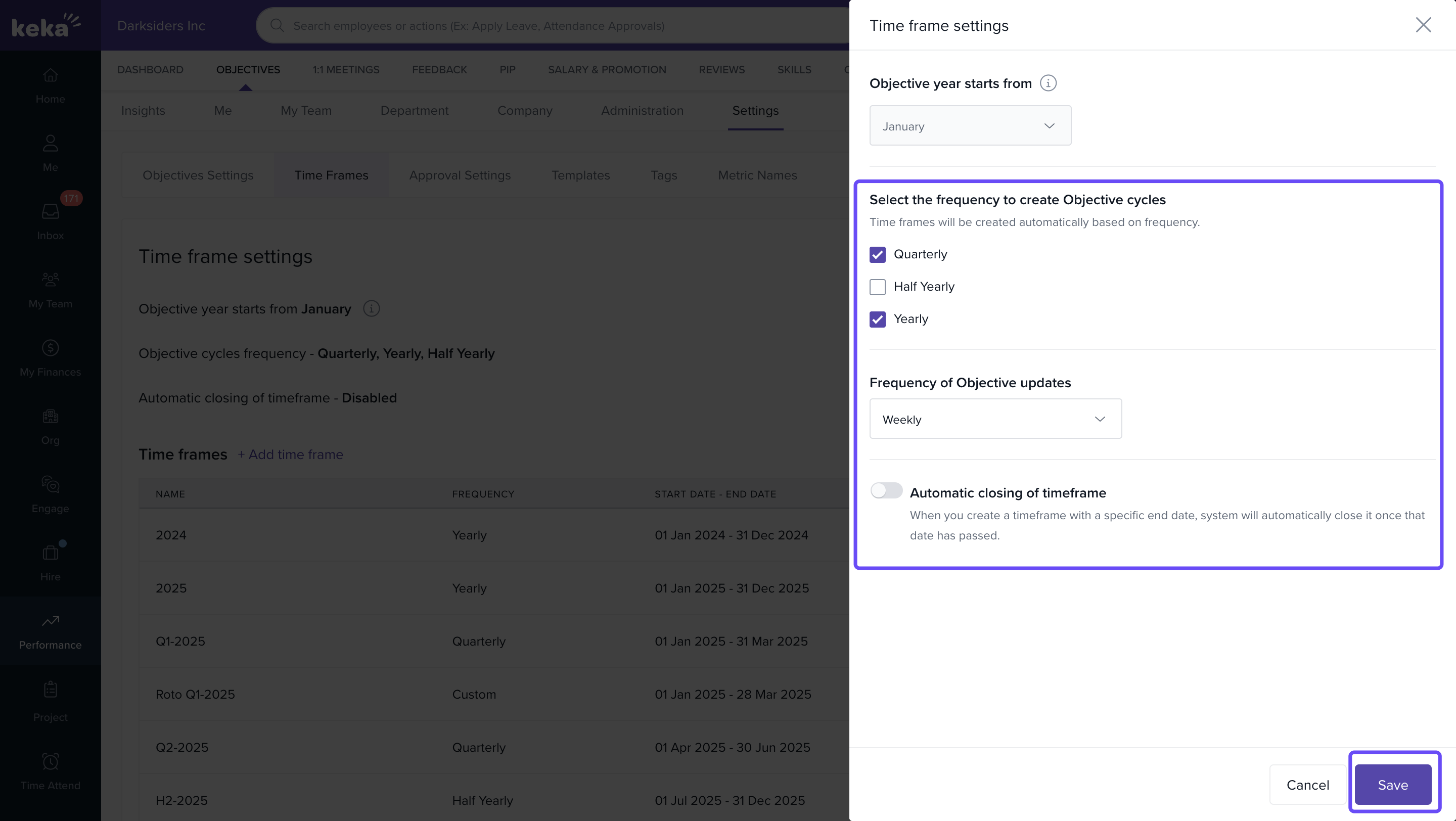 Keka lets you automate timeframe creation, so objectives continue to roll out based on your preferred schedule.