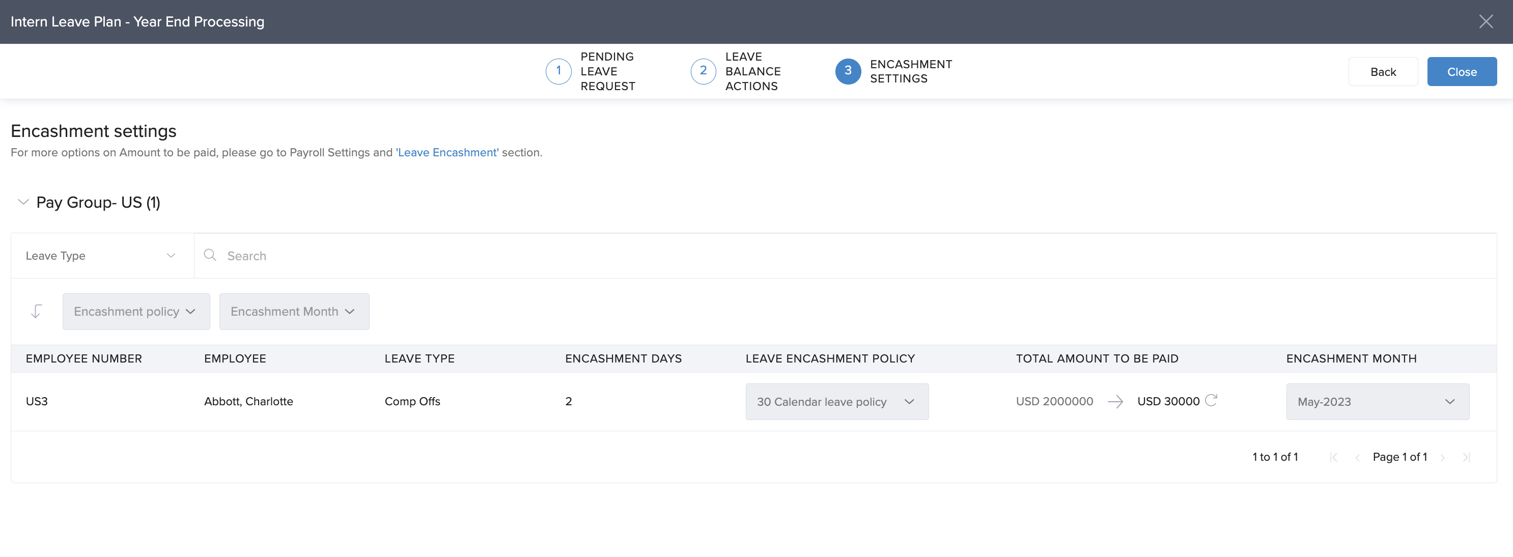 Note: Setting up a default encashment policy won’t affect payroll or employee balances. It only satisfies a system requirement to complete YEP.