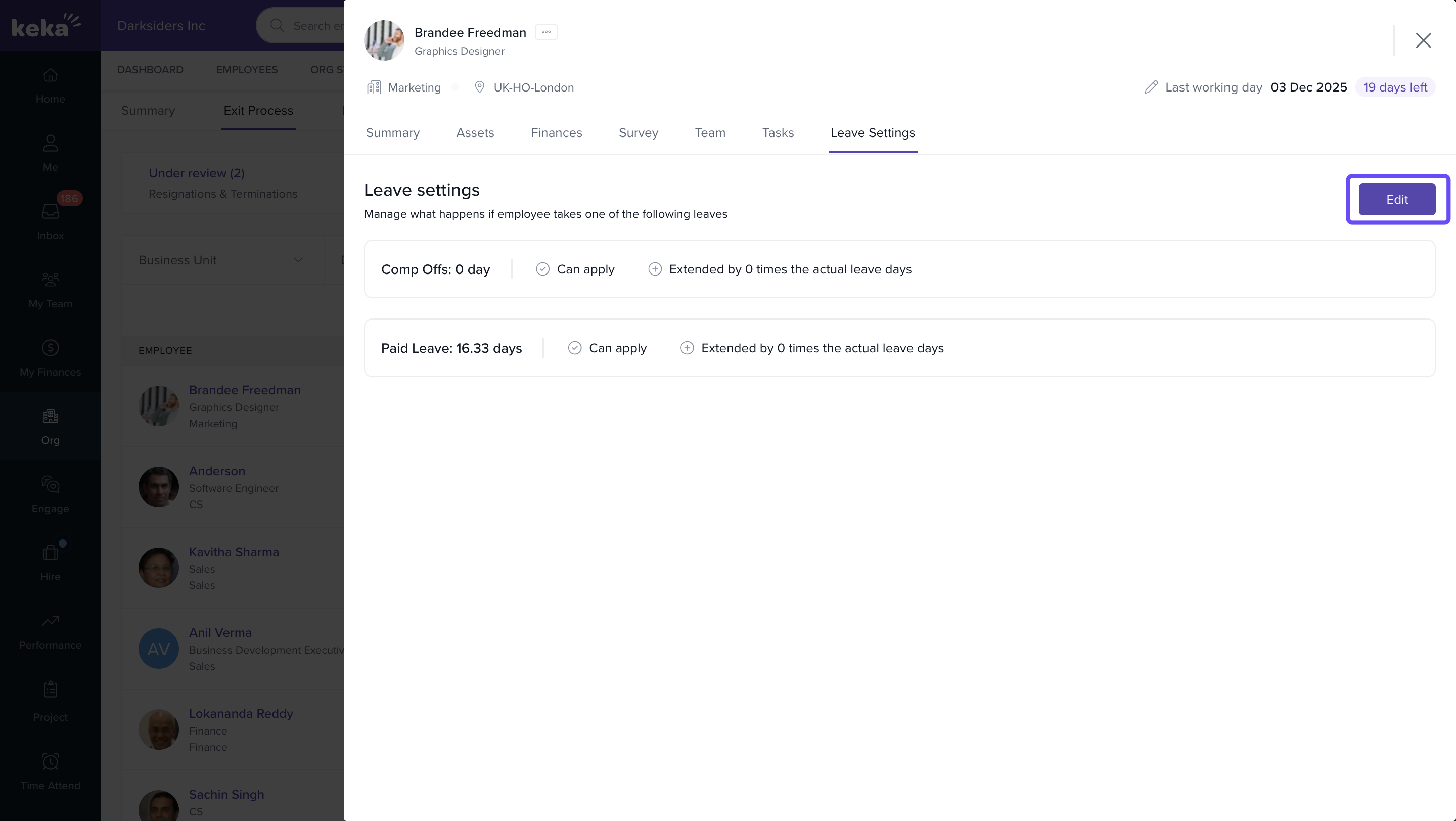 - Open the Leave Settings section and click Edit.