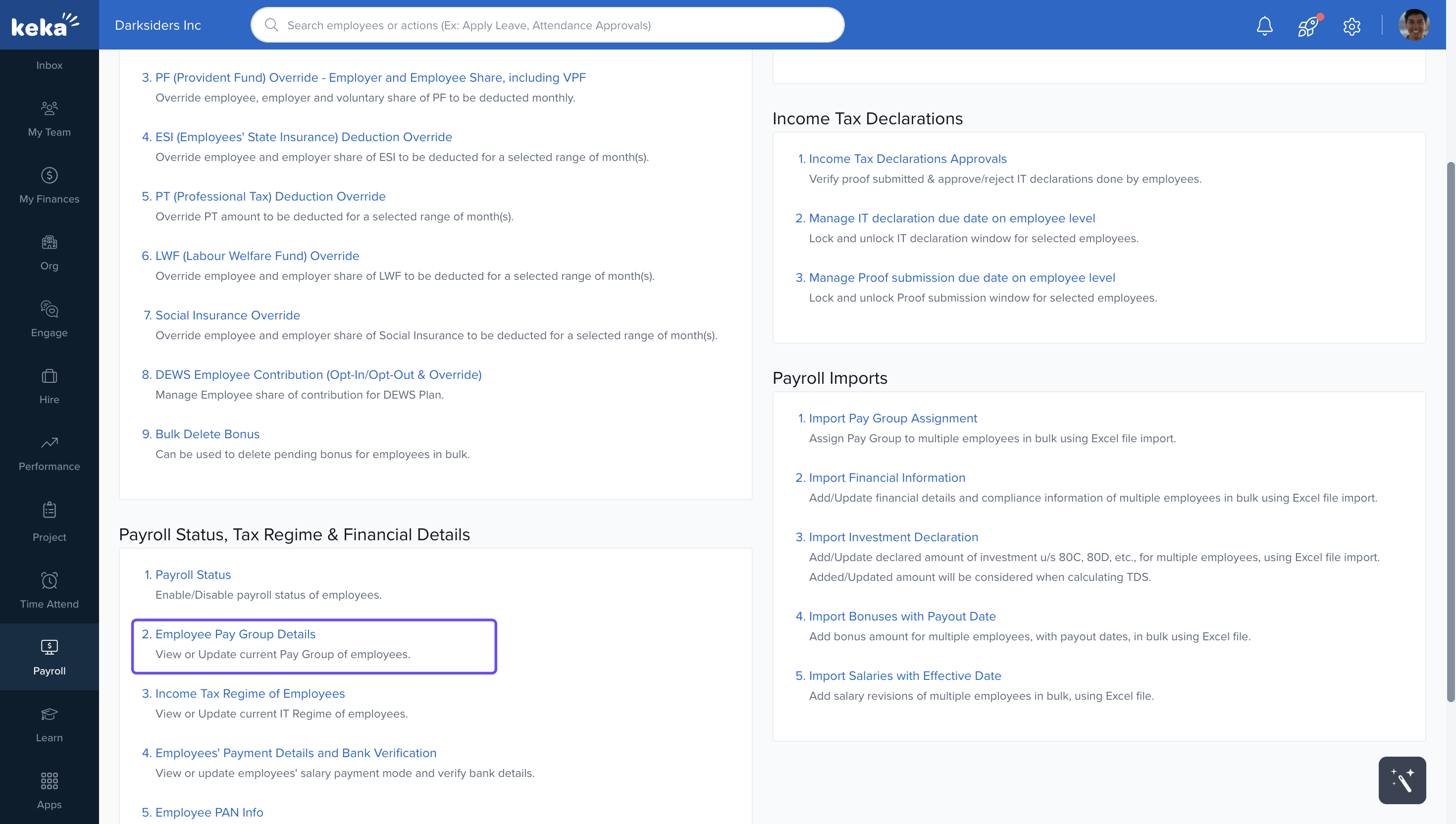 A pay group in Keka helps categorize employees based on business unit, legal entity, pay cycle, frequency, and employee type. When an employee transfers internally across business units, their pay group may also change.