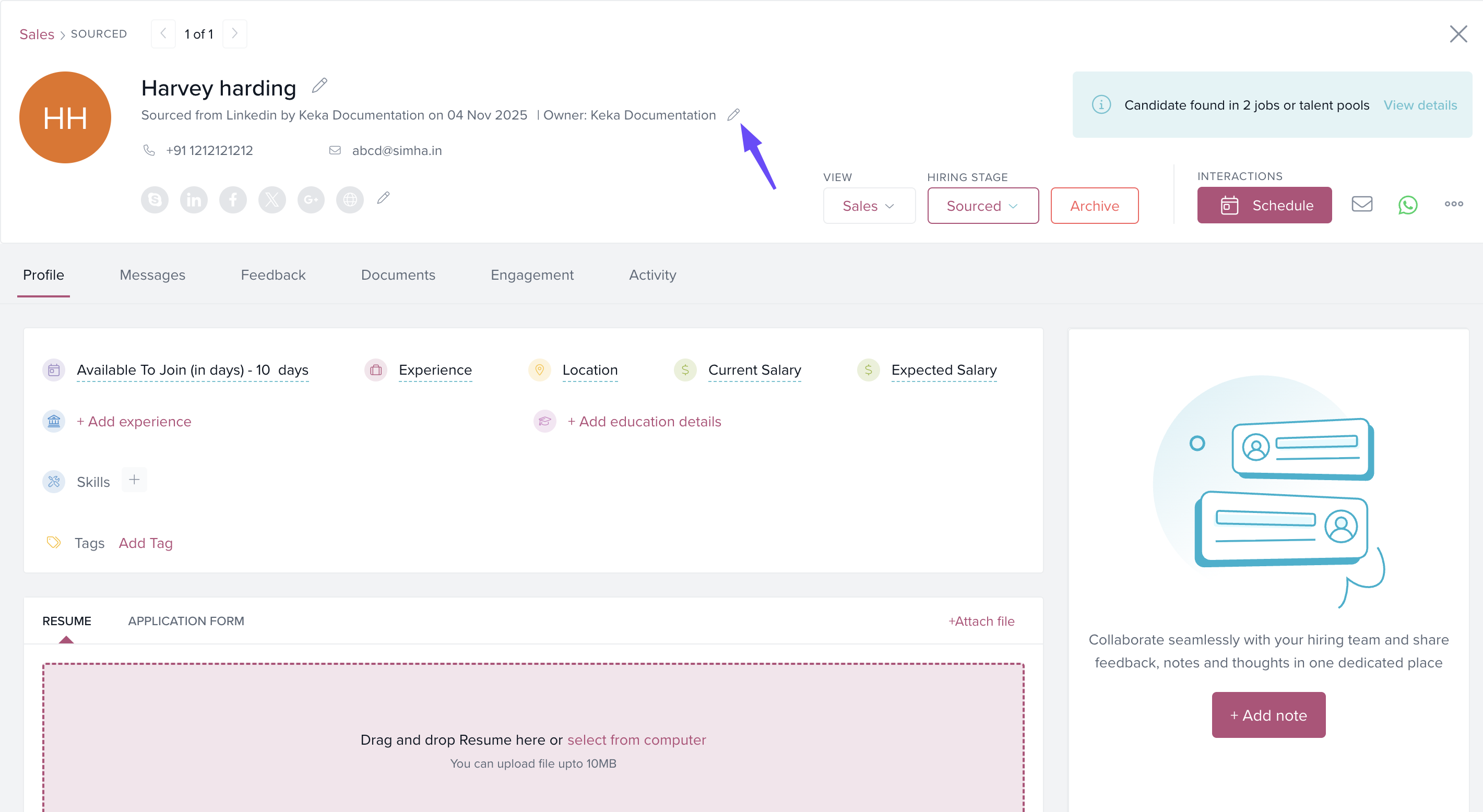 A candidate in Keka Hire refers to an individual seeking to be hired, elected, or selected for a job position. In the Keka Hire platform, candidate profiles may sometimes contain incomplete or incorrect information. In such cases, the Global Admin or Recruiters can manually update these details.