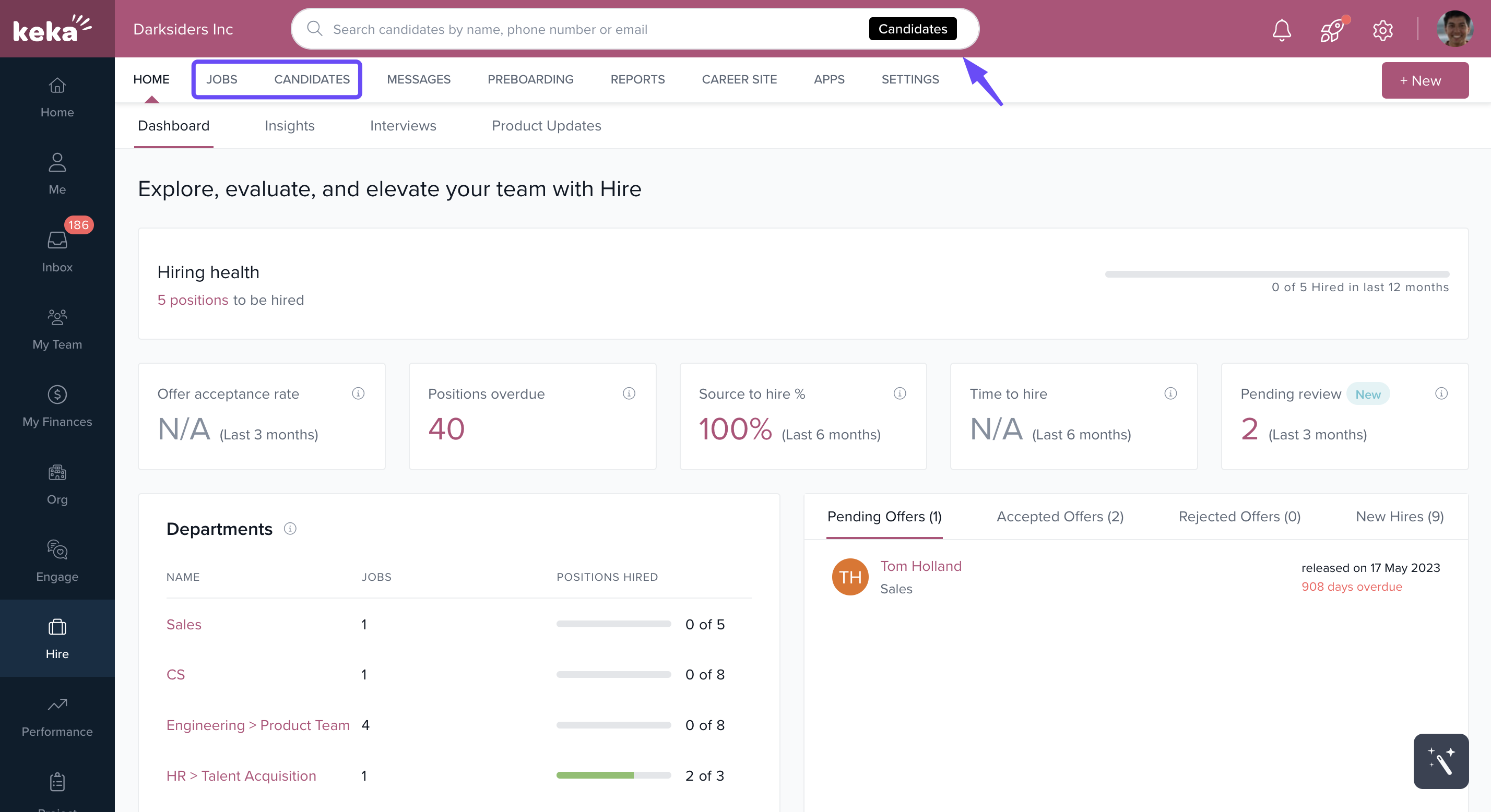 Navigate through a specific Job in the Jobs section to find the candidate.