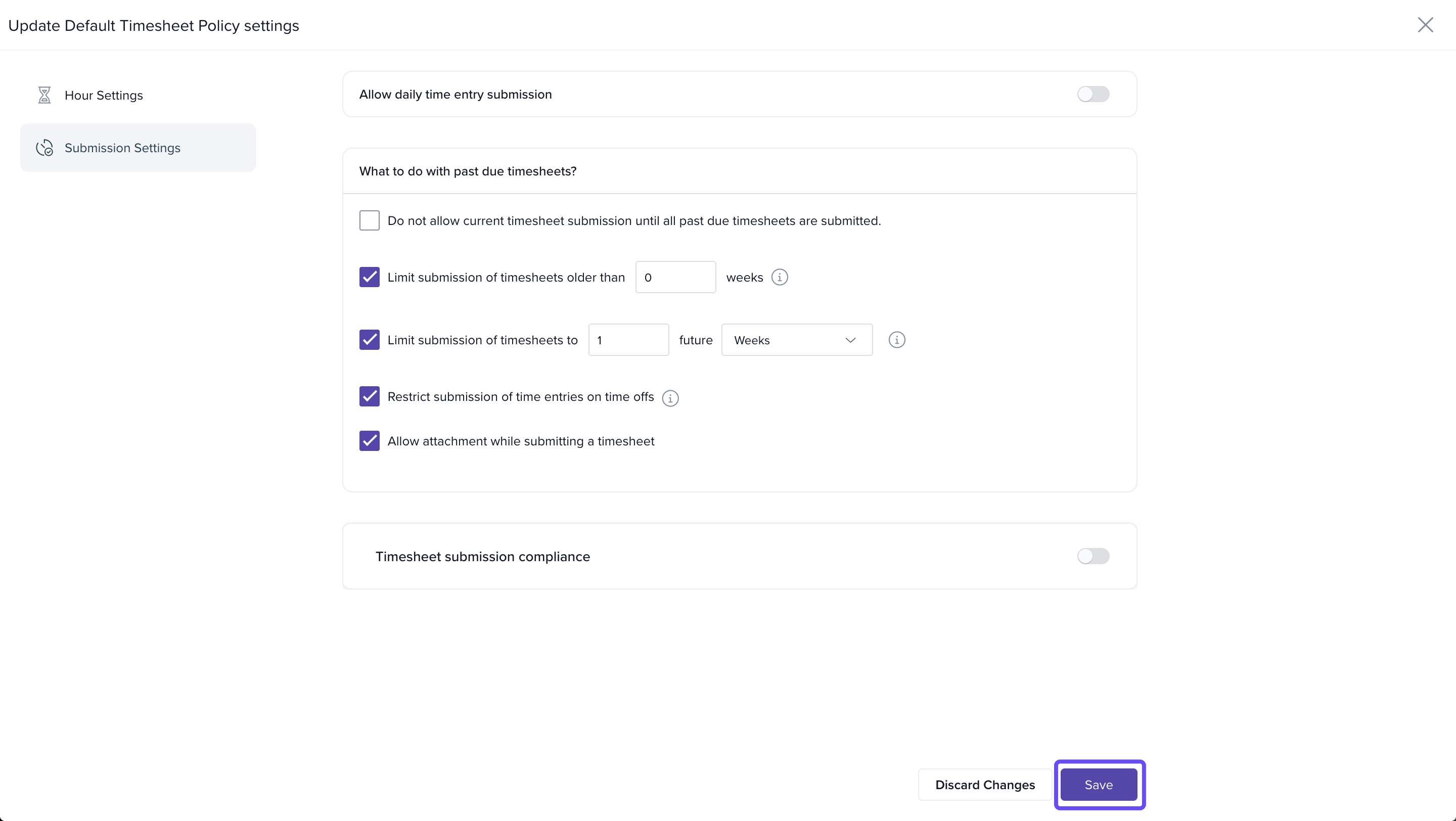 For more details, visit: Creating, Managing, and Assigning Timesheet Policies.