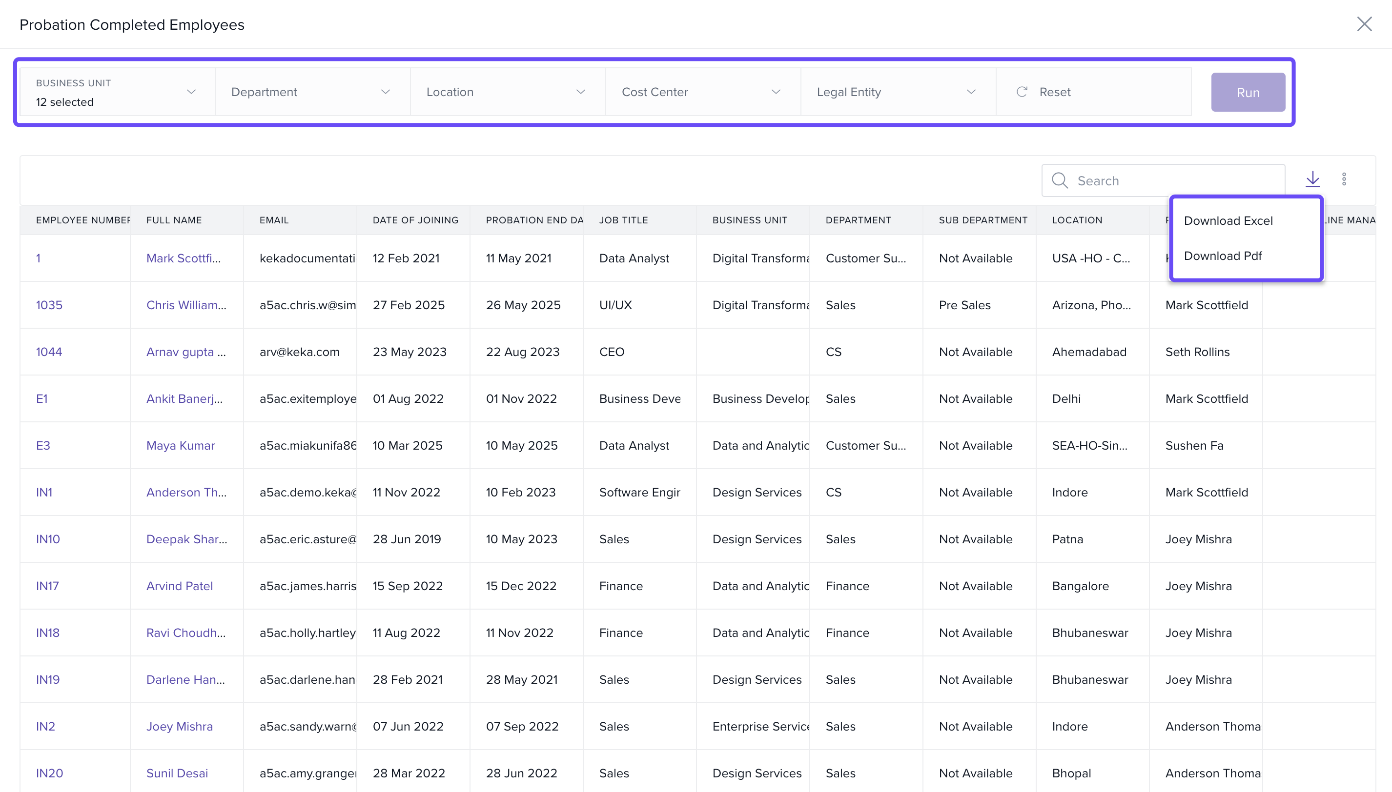 That’s how you can easily access and download the Probation Completed Employees report in Keka.