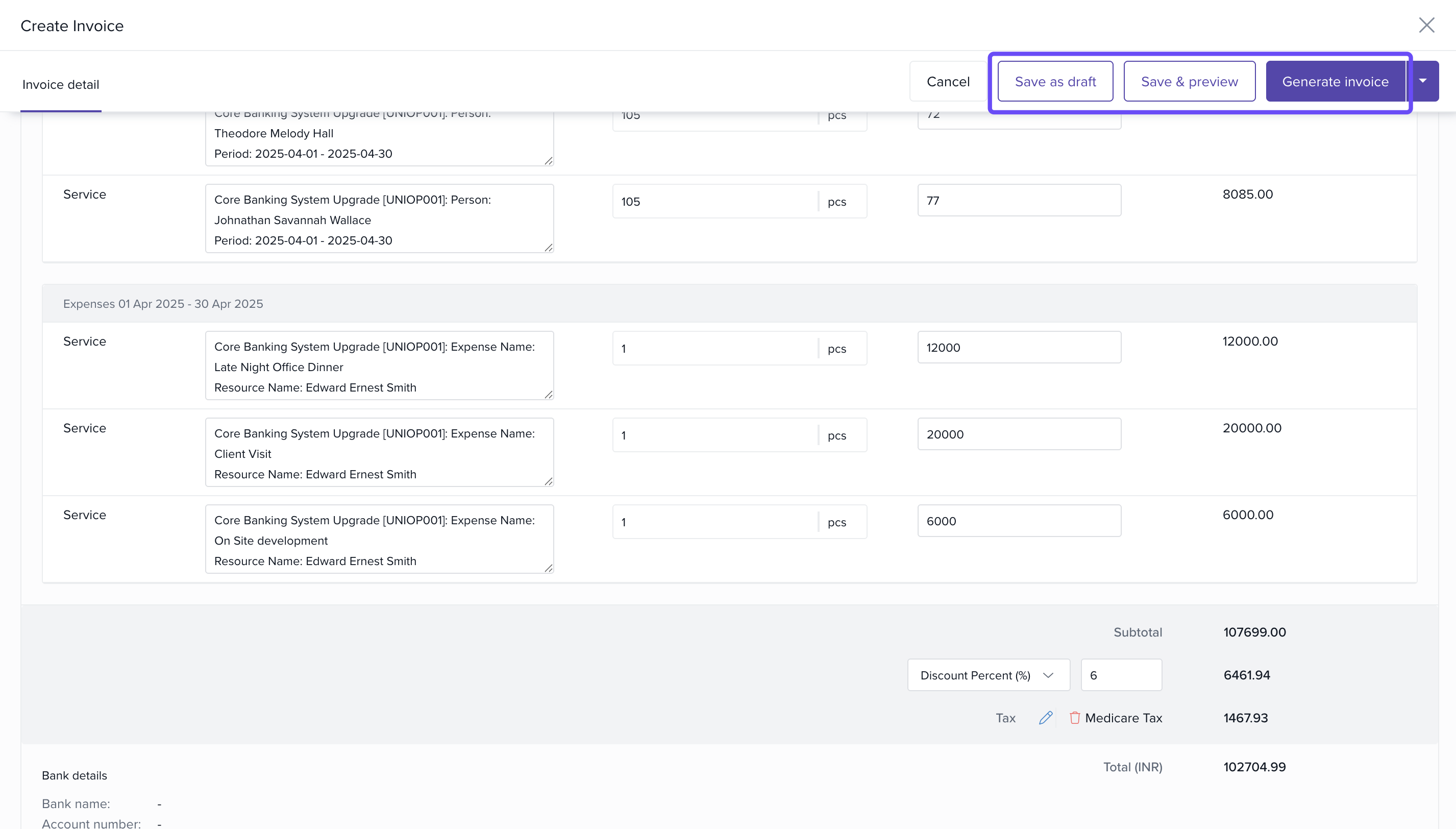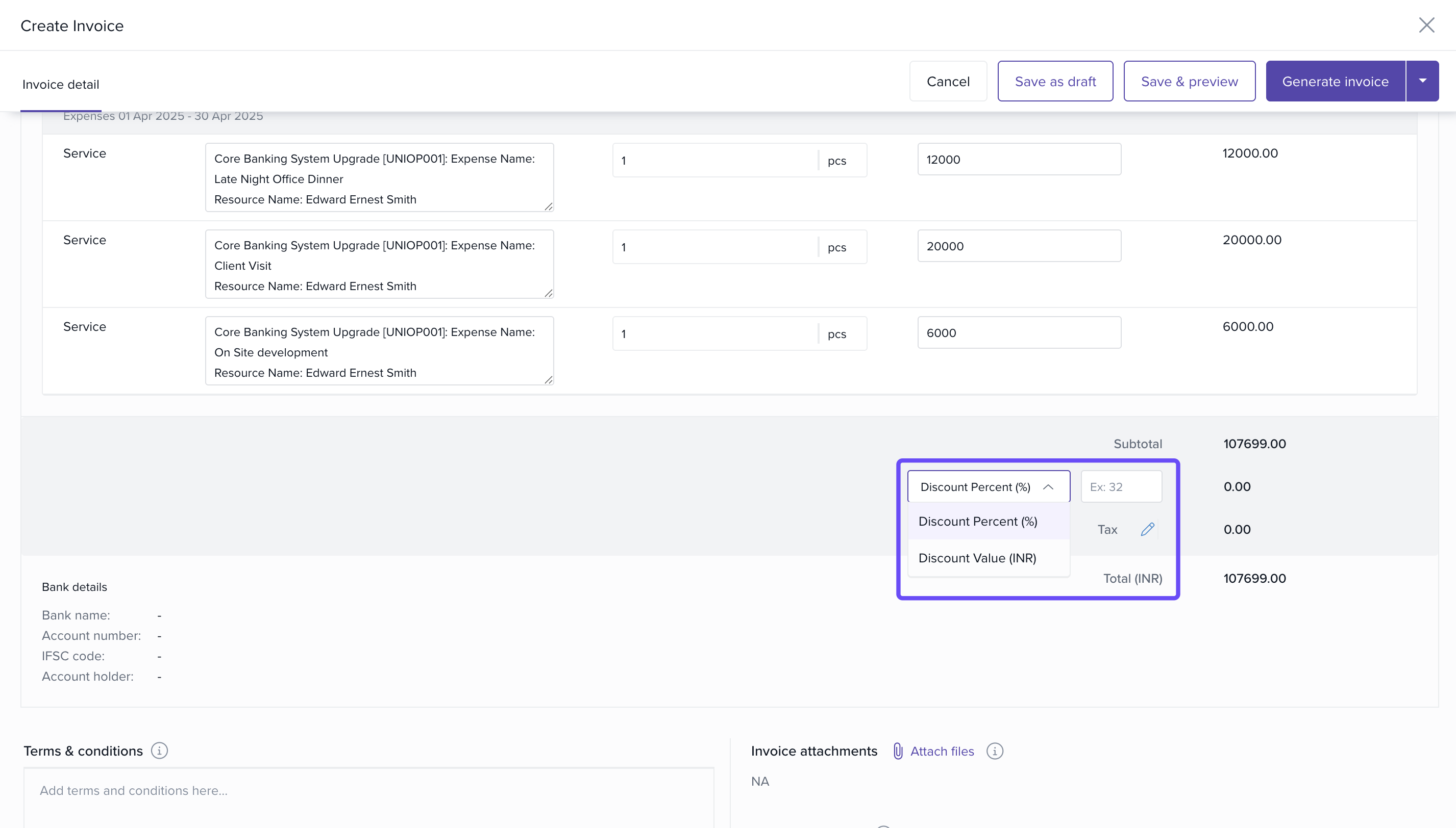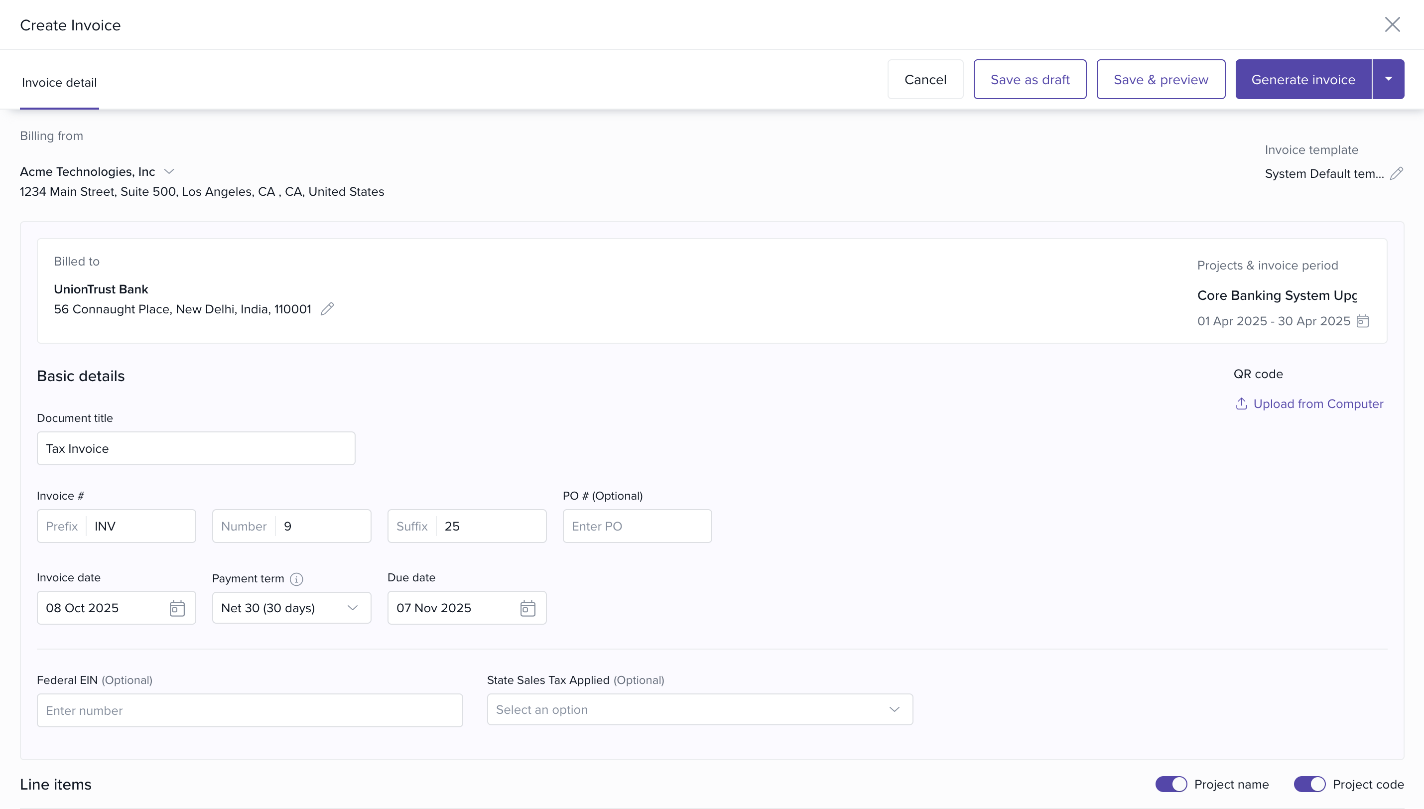This article explains how to create and manage invoices in Keka PSA. You’ll learn how to generate new invoices, customize line items, apply taxes and discounts, edit draft invoices, and finalize billing for clients and projects. Proper invoice management ensures accurate revenue tracking, simplifies financial operations, and maintains compliance with client agreements.