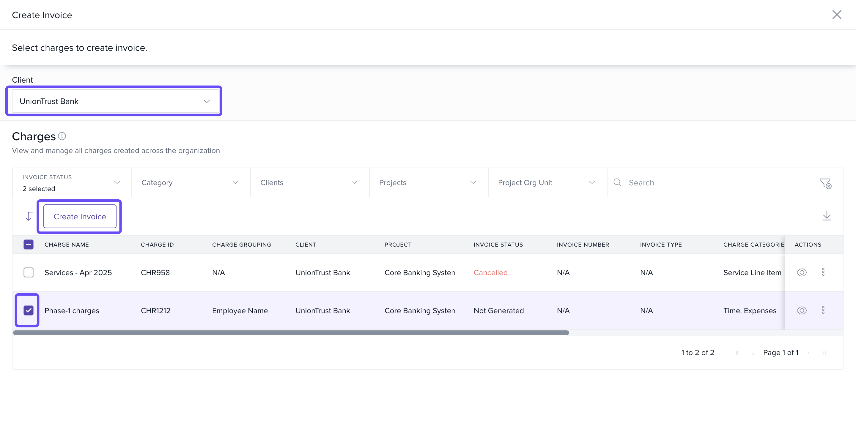 - Use the Charges Creation feature to simplify pre-invoice billing