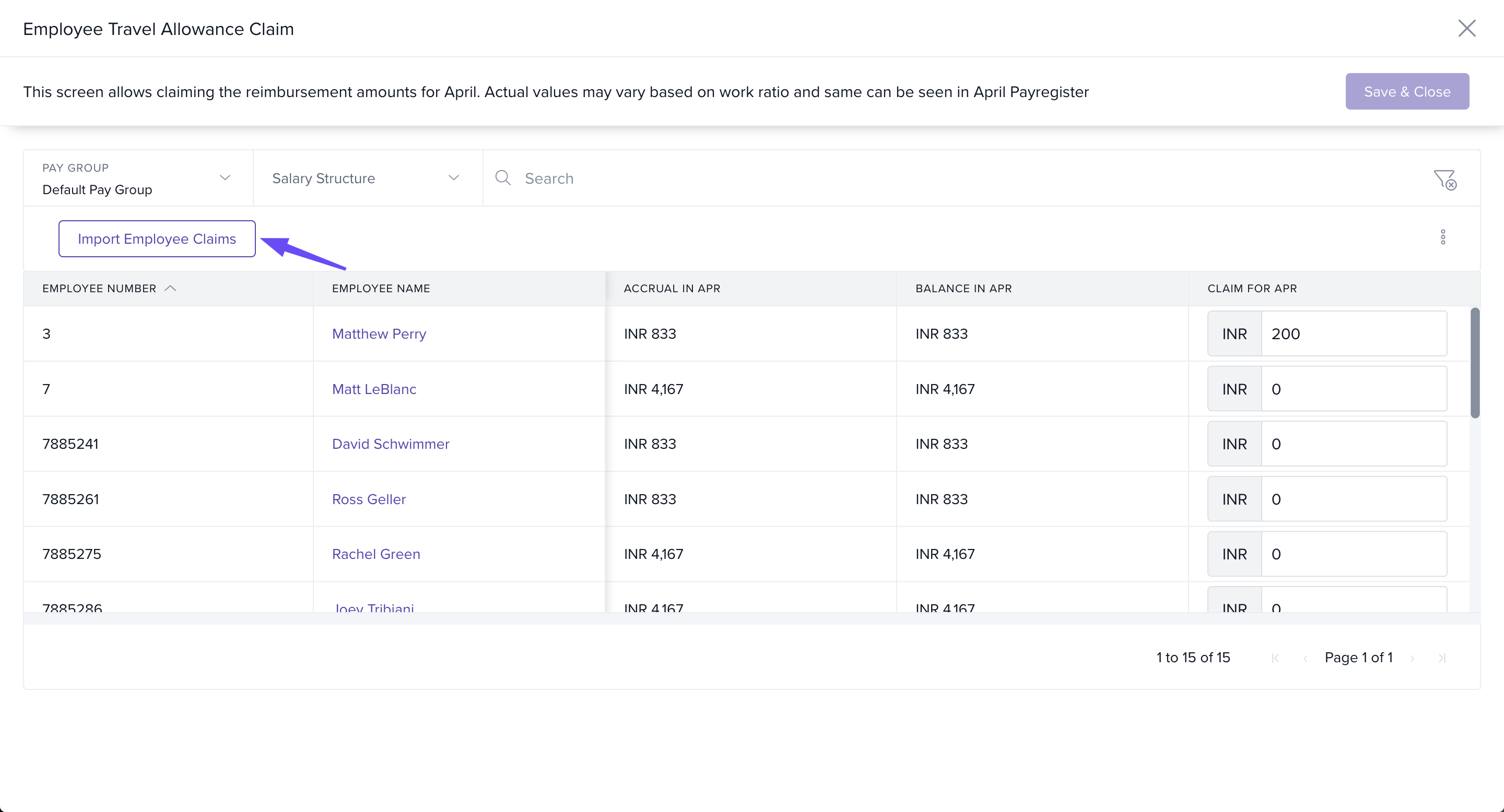 - Click Import Employee Claims.