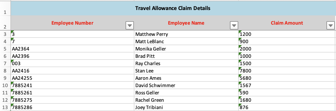- Delete rows for employees you’re not updating.