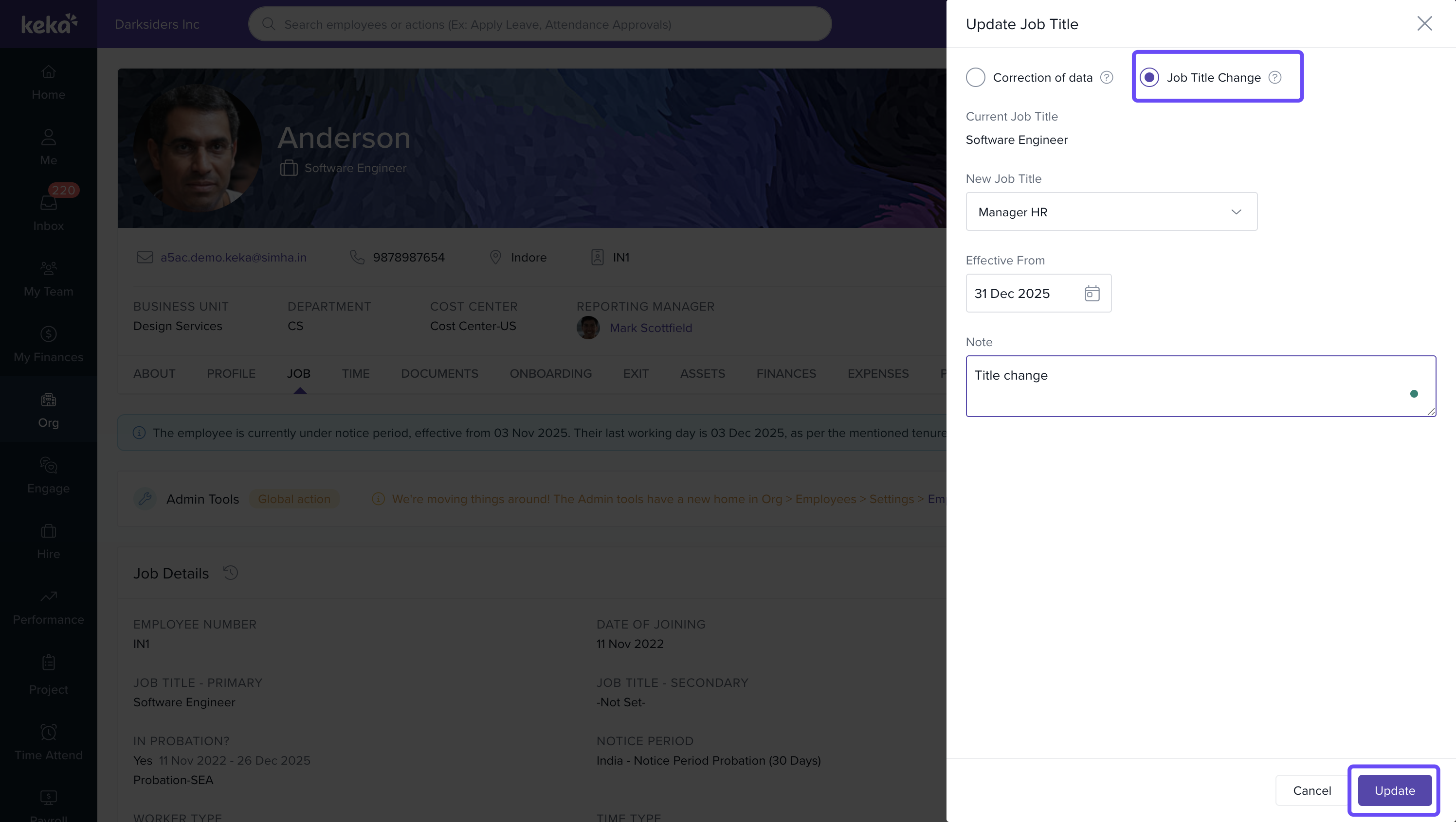 Tip: Use this feature to align job title updates with official promotion letters or internal transfer dates.