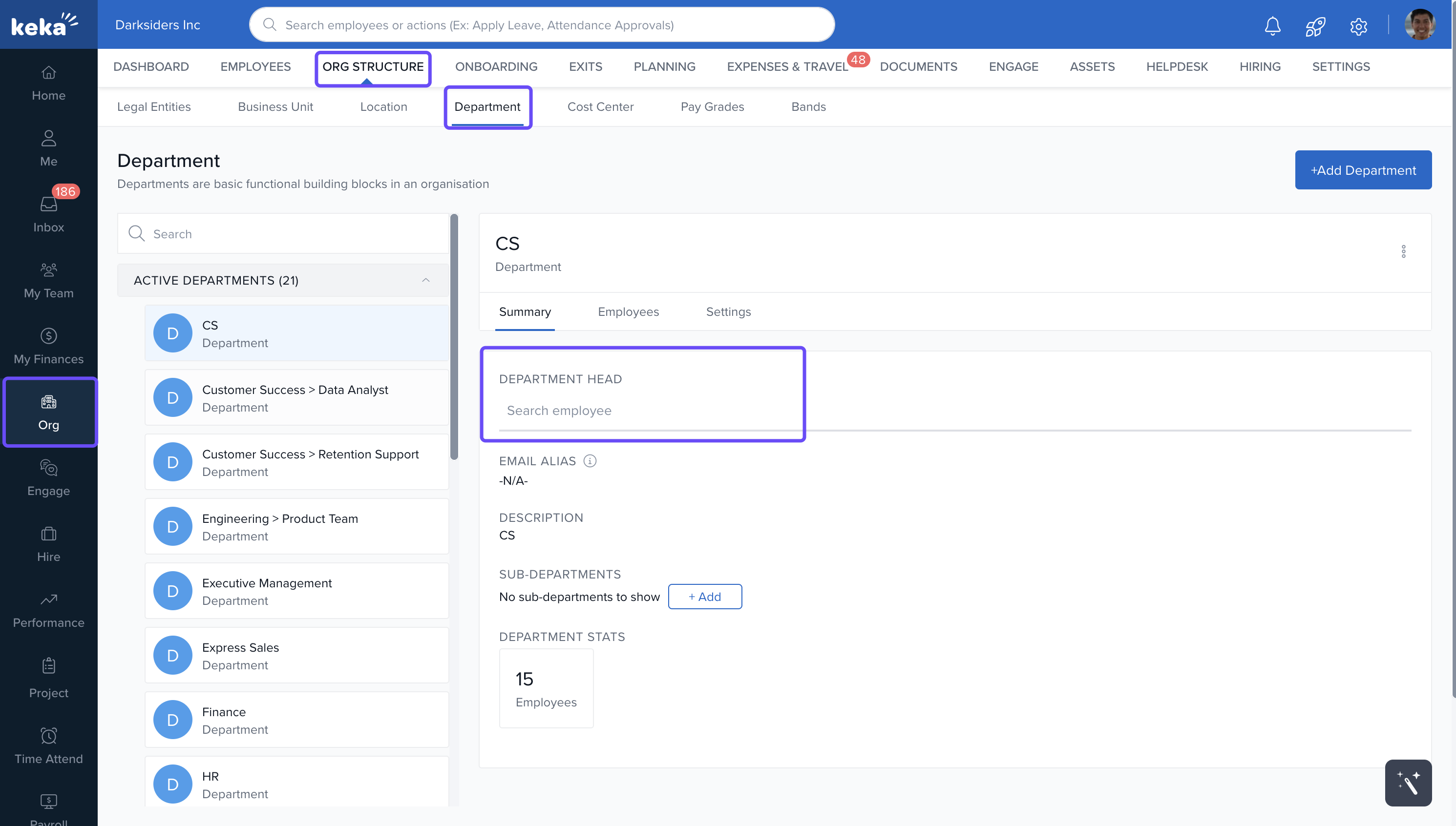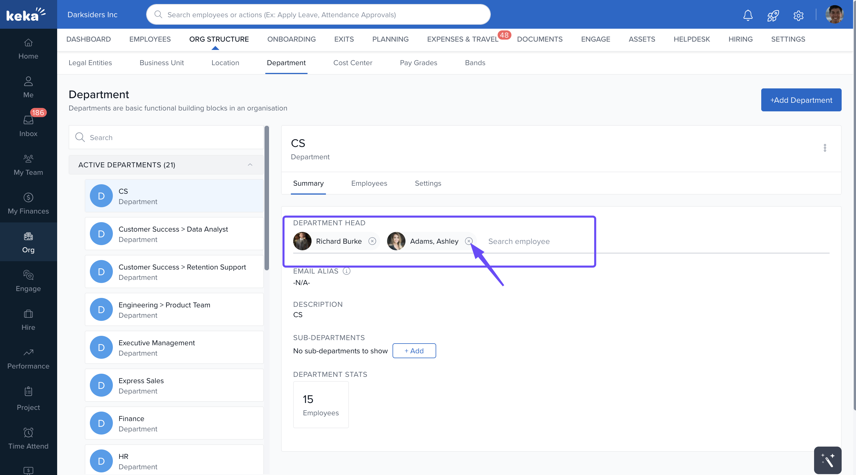 This process allows you to efficiently manage department heads in Keka.