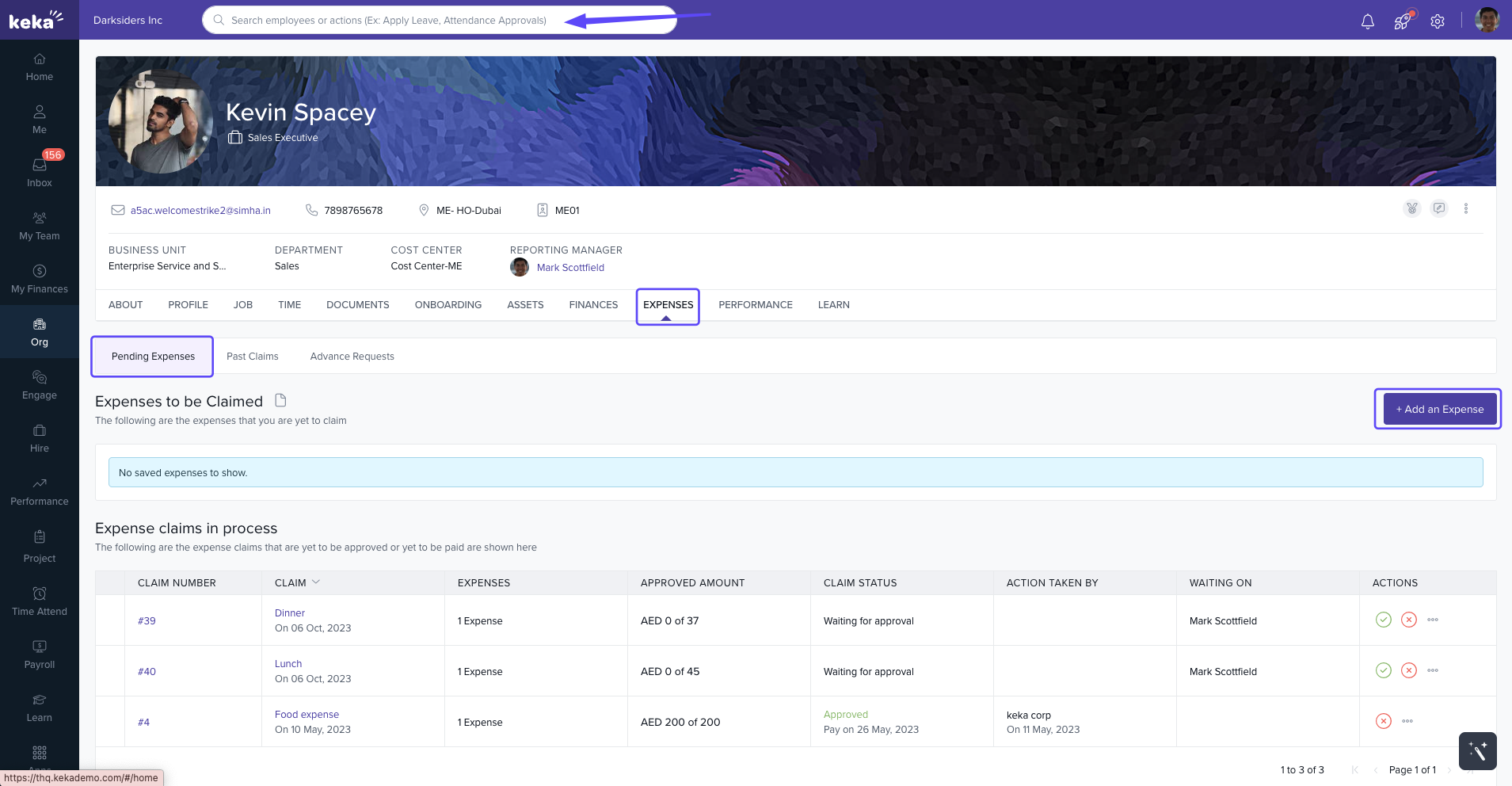 In Keka, admins and managers can submit expense claims on behalf of employees. This helps when employees are unavailable or when claims need to be managed centrally.