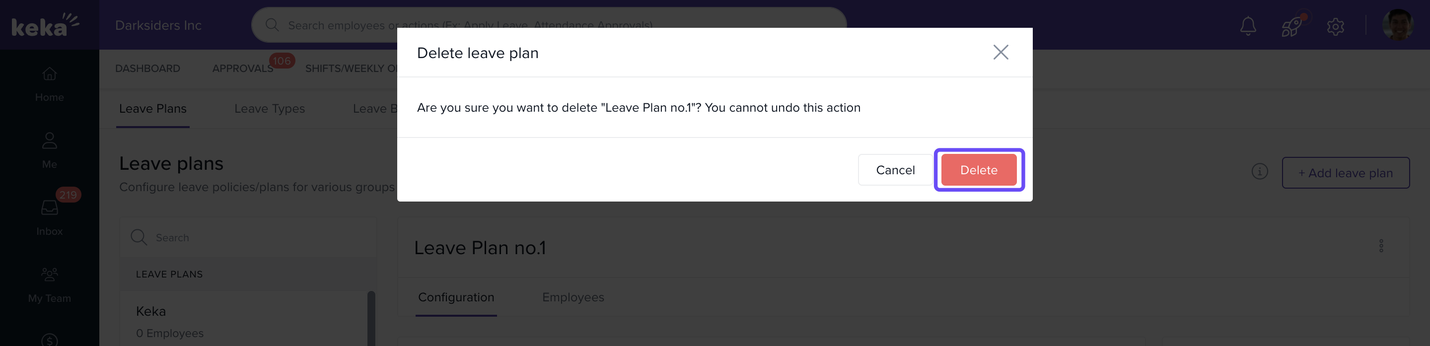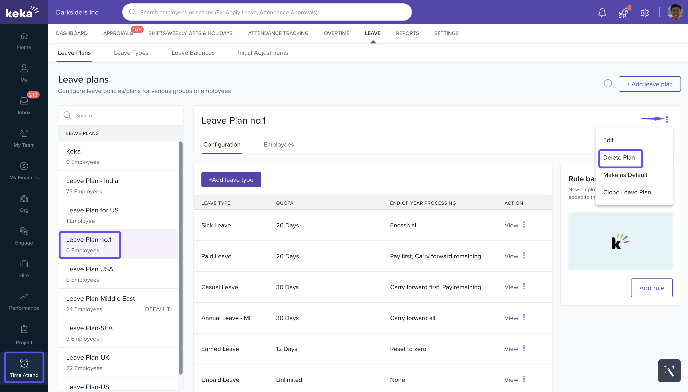 - Select the Leave Plan you want to delete.