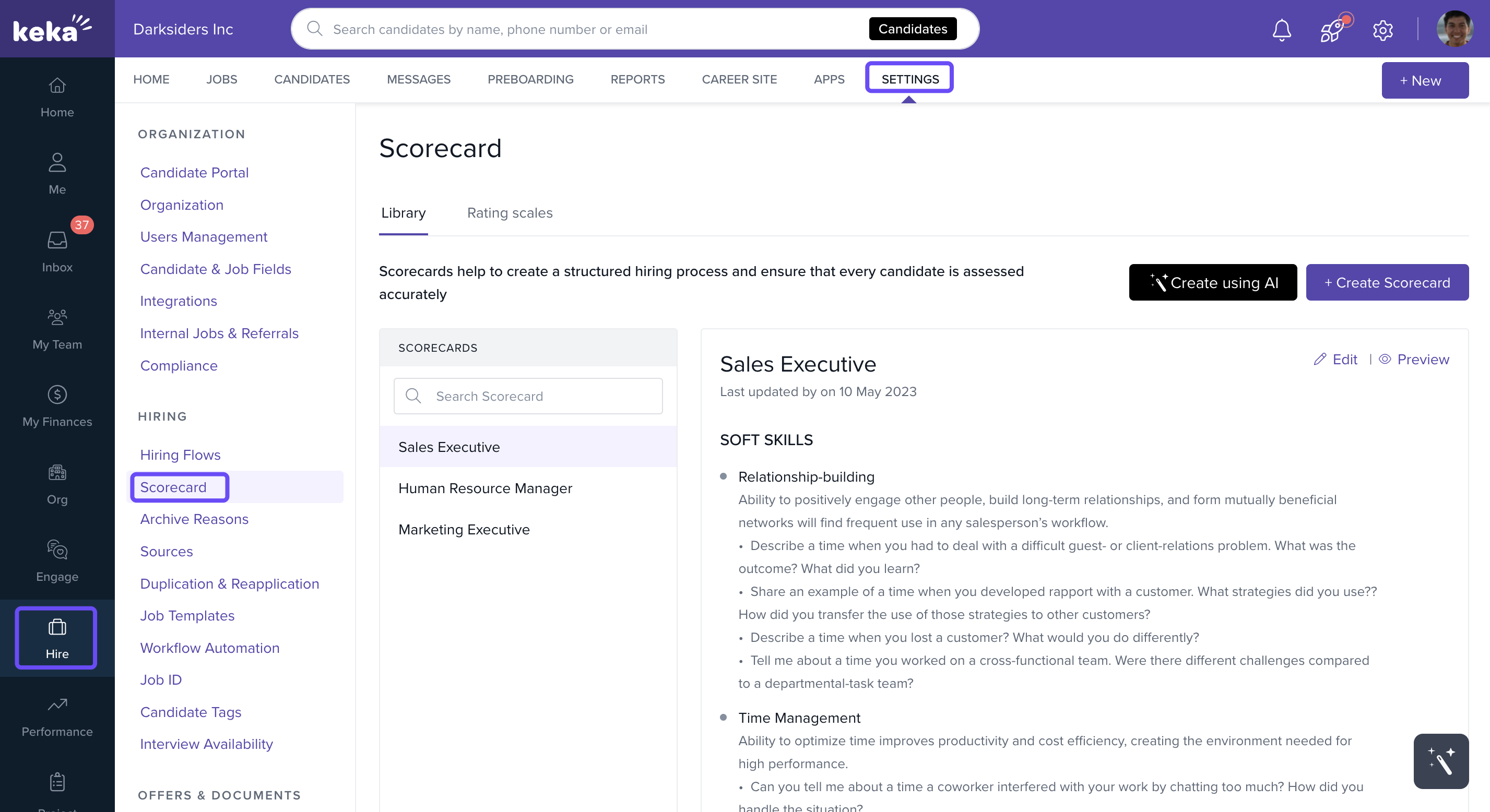 Keka Hire's Scorecard Enhancement feature lets you customize how interviewers rate candidates during the hiring process. You can tailor rating scales, feedback labels, and scoring formats to better suit your evaluation methods. This helps teams make informed decisions with consistent, structured feedback.