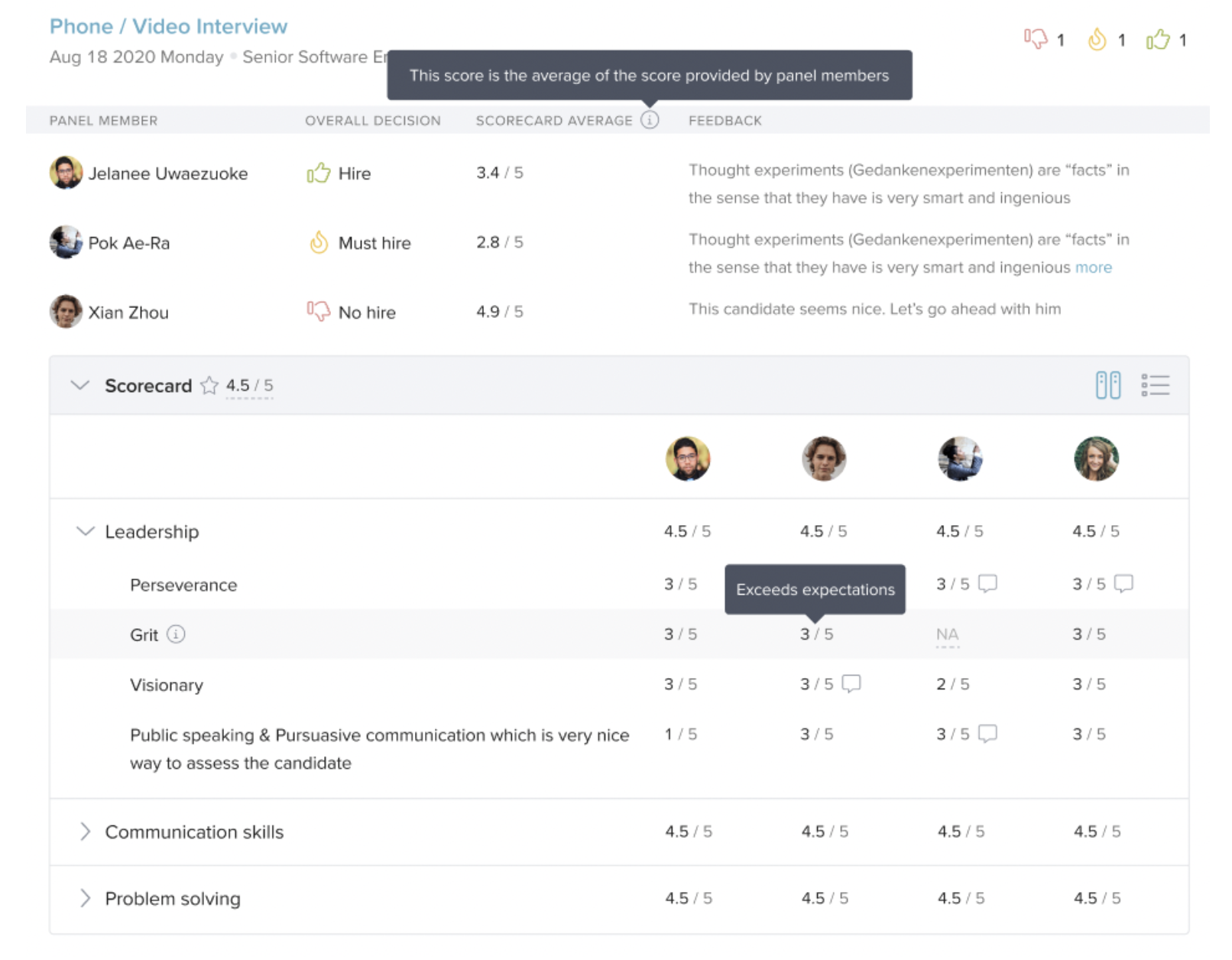 Overall Feedback Decision: This lets interviewers share a final opinion on a candidate.