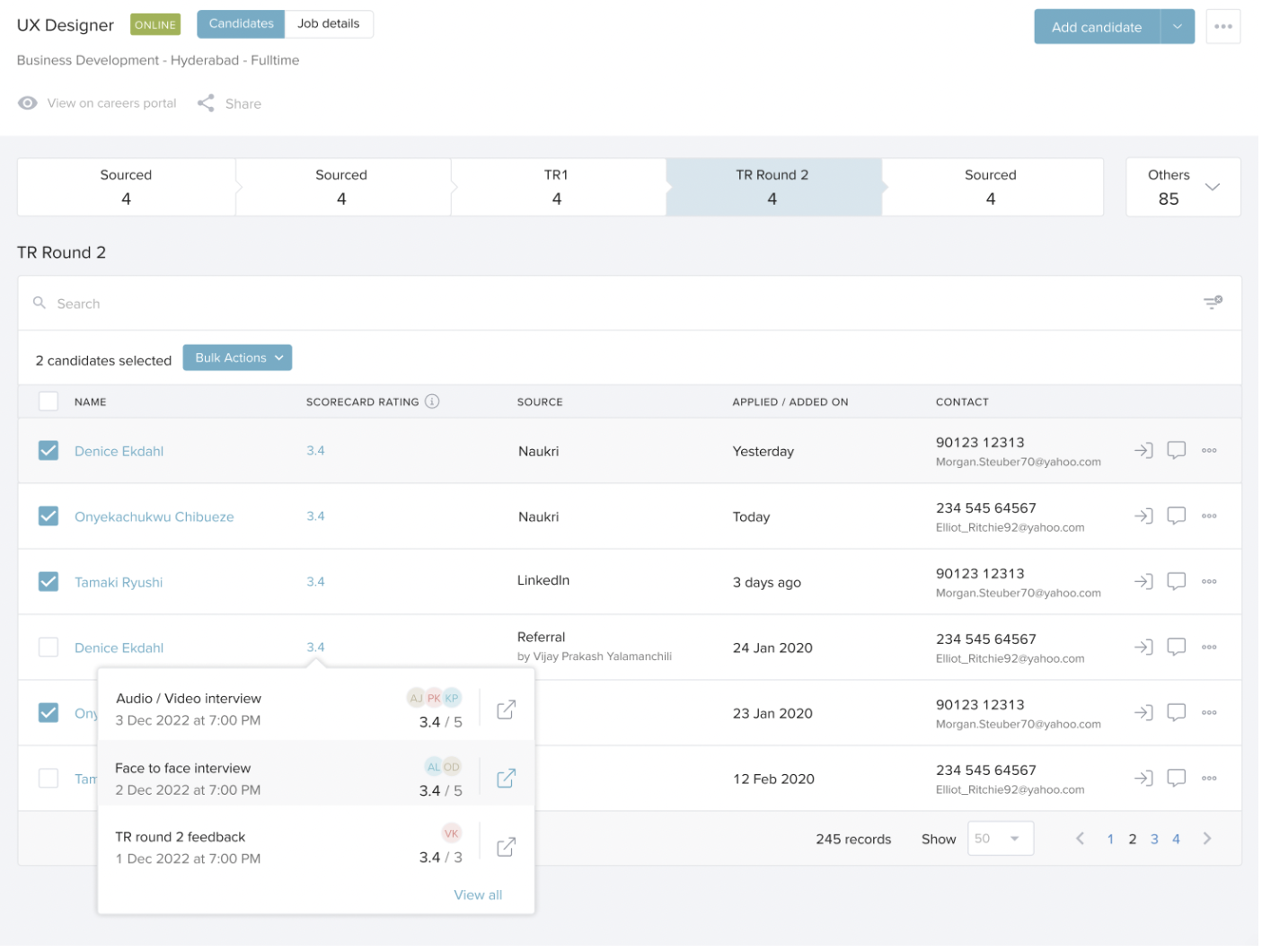 This feature is available to Global Admins, Super Recruiters, Interviewers, and Recruiters.