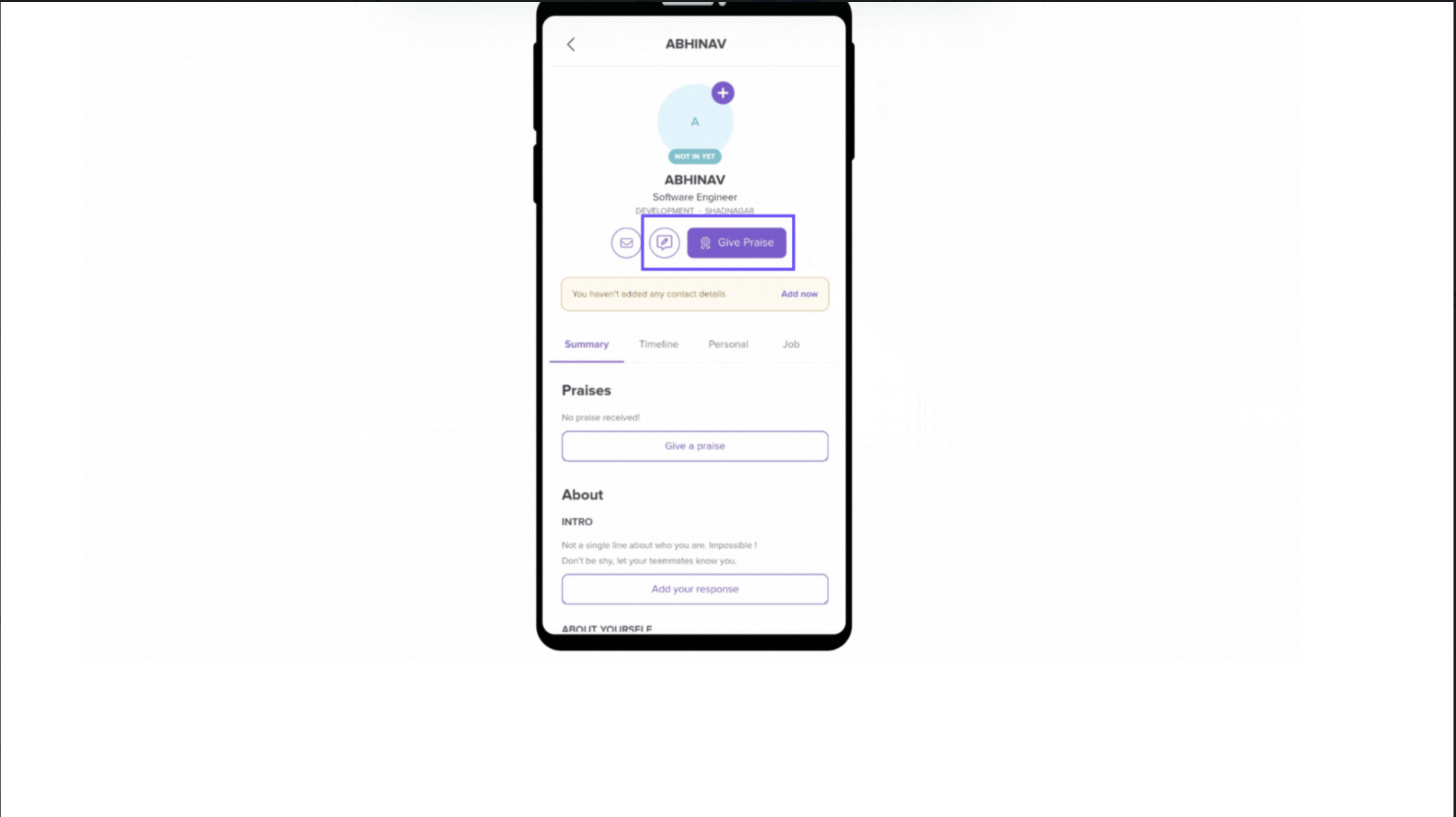 Give Praise: Head to any employee's profile, tap Give Praise, and express your appreciation.