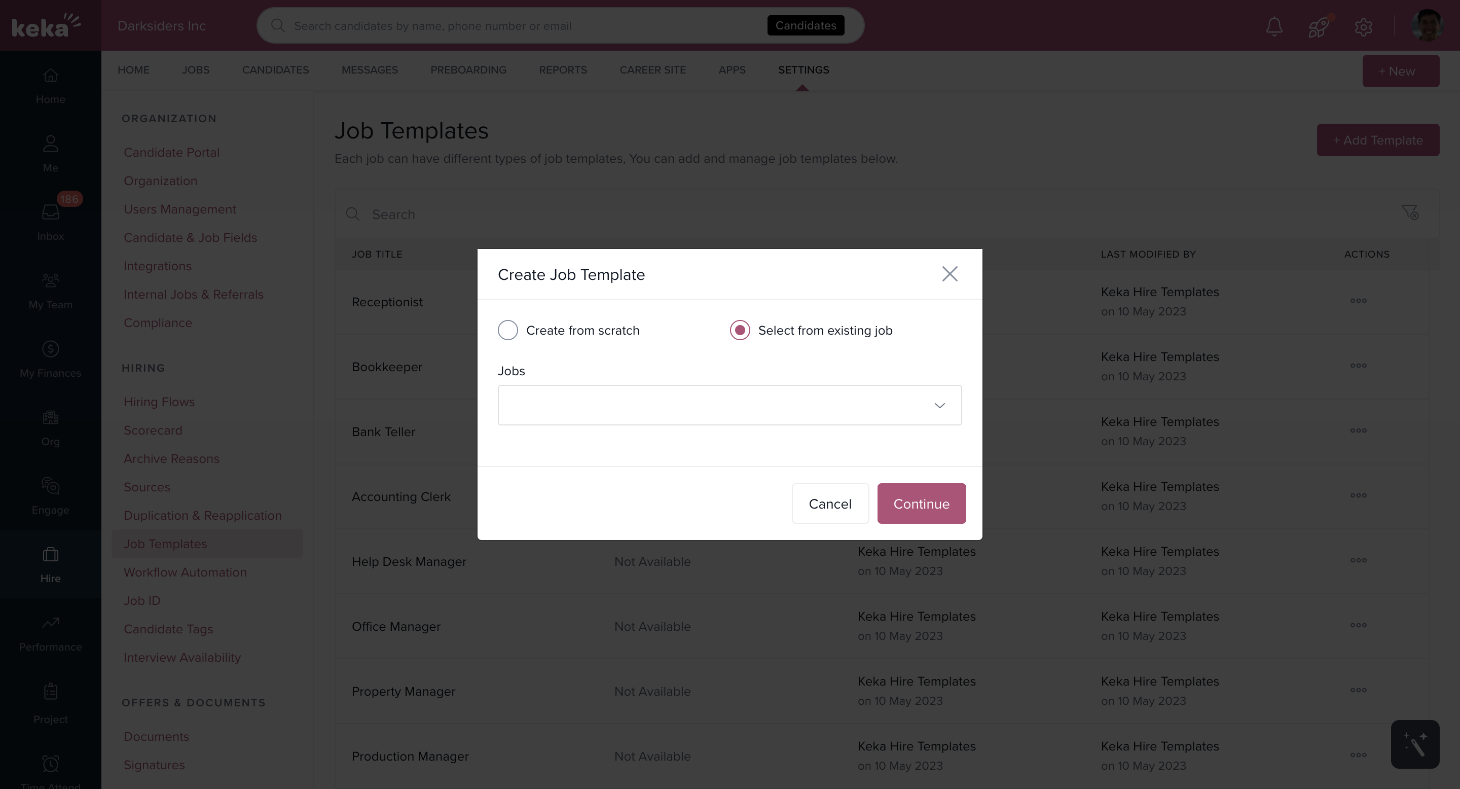 Under the Hiring section, select Job Templates.