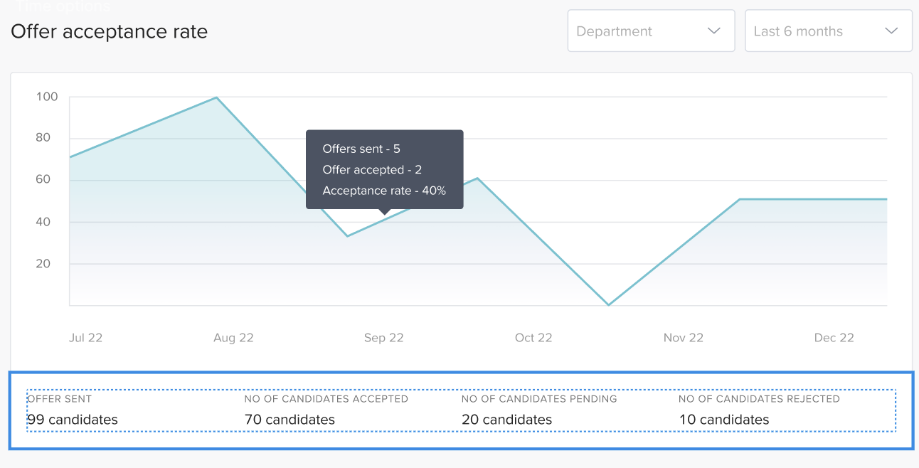 This widget shows detailed breakdown of offer acceptance rate across departments and widget.