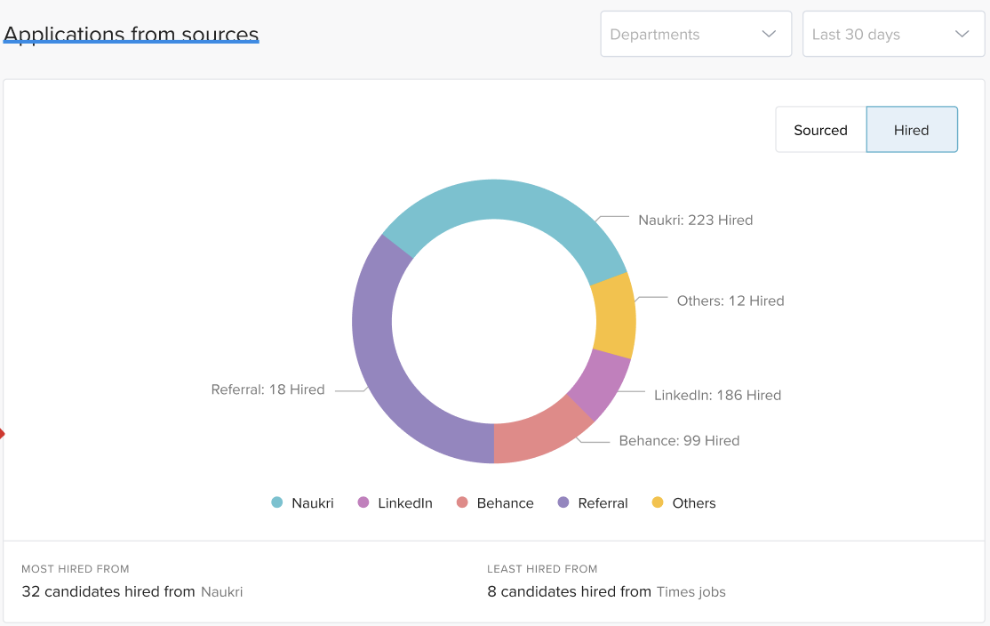 This widget gives a detailed breakdown of all sources that give most hires and sources. One can study the pattern from past to plan for future hiring plans.