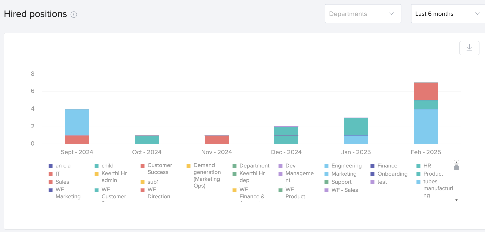 This widget shows the breakdown of most recent hires across the organizaiton.