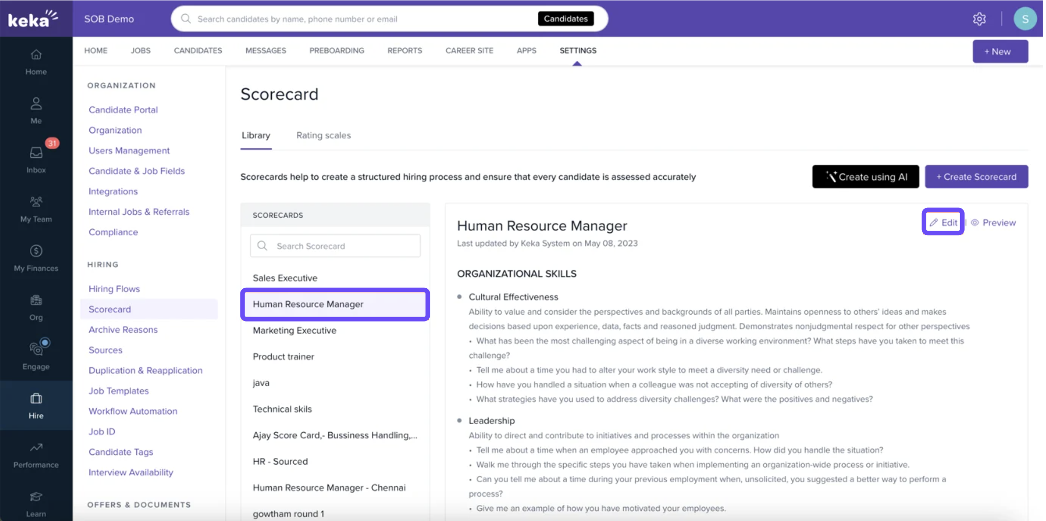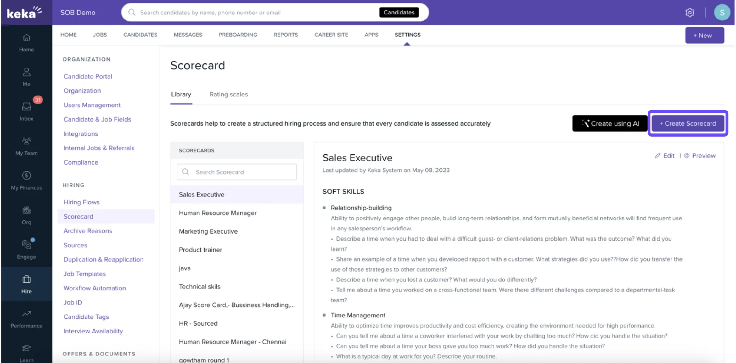 This guide explains how to set up and manage scorecards and rating scales in Keka Hire. These tools help ensure a structured and consistent evaluation process for all candidates.