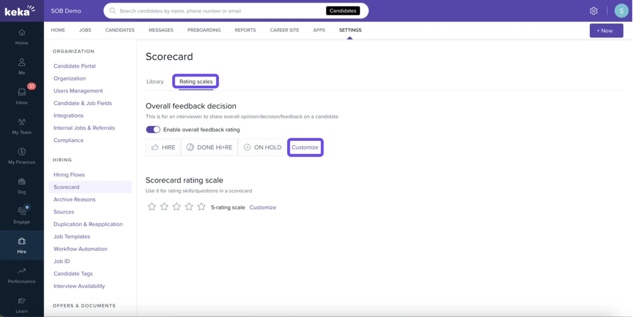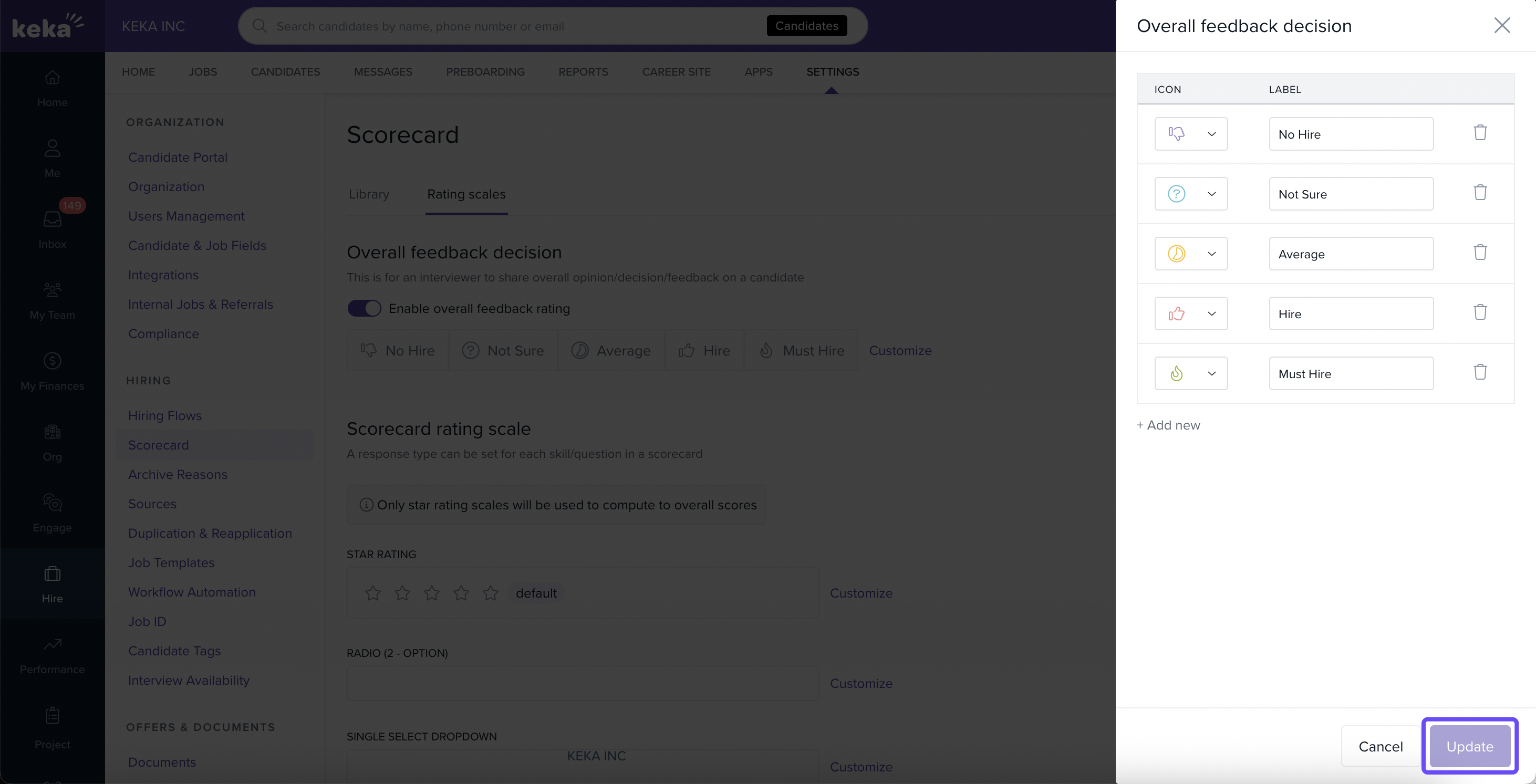 Overall Feedback Toggle: Enable or disable the overall decision rating option based on your hiring needs.