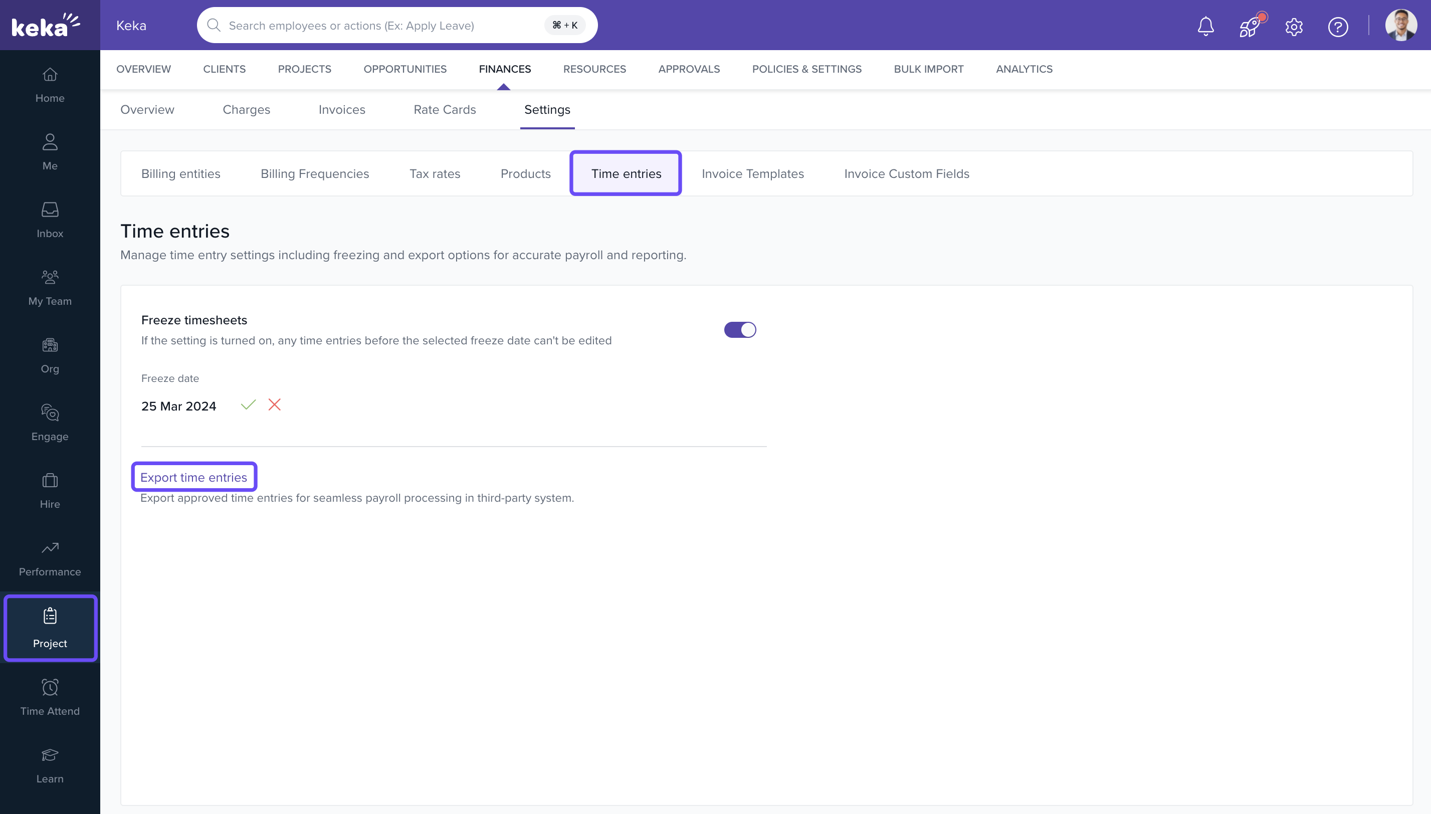 - Click on Export Time entries