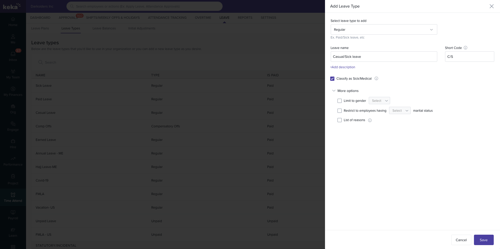 Add custom reasons to make the leave type fit your organization’s requirements.
