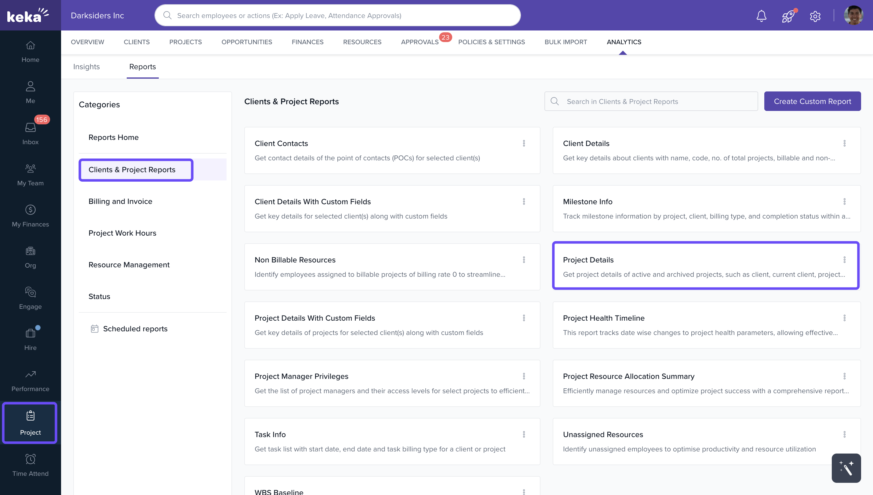 - Navigate to the Project section of the Keka Portal and select Analytics.