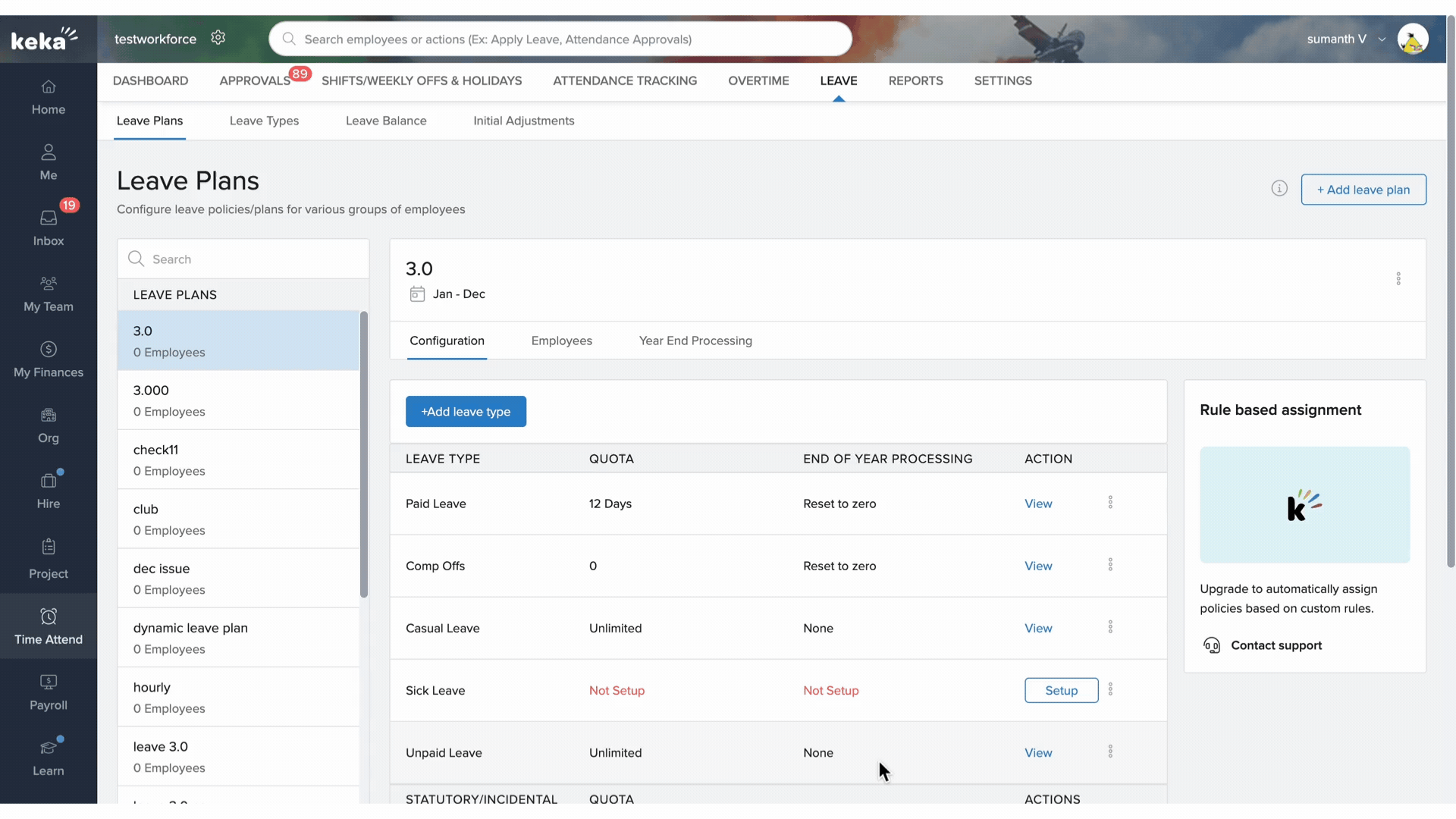- Go to Time Attend > Leave > Leave Plans.