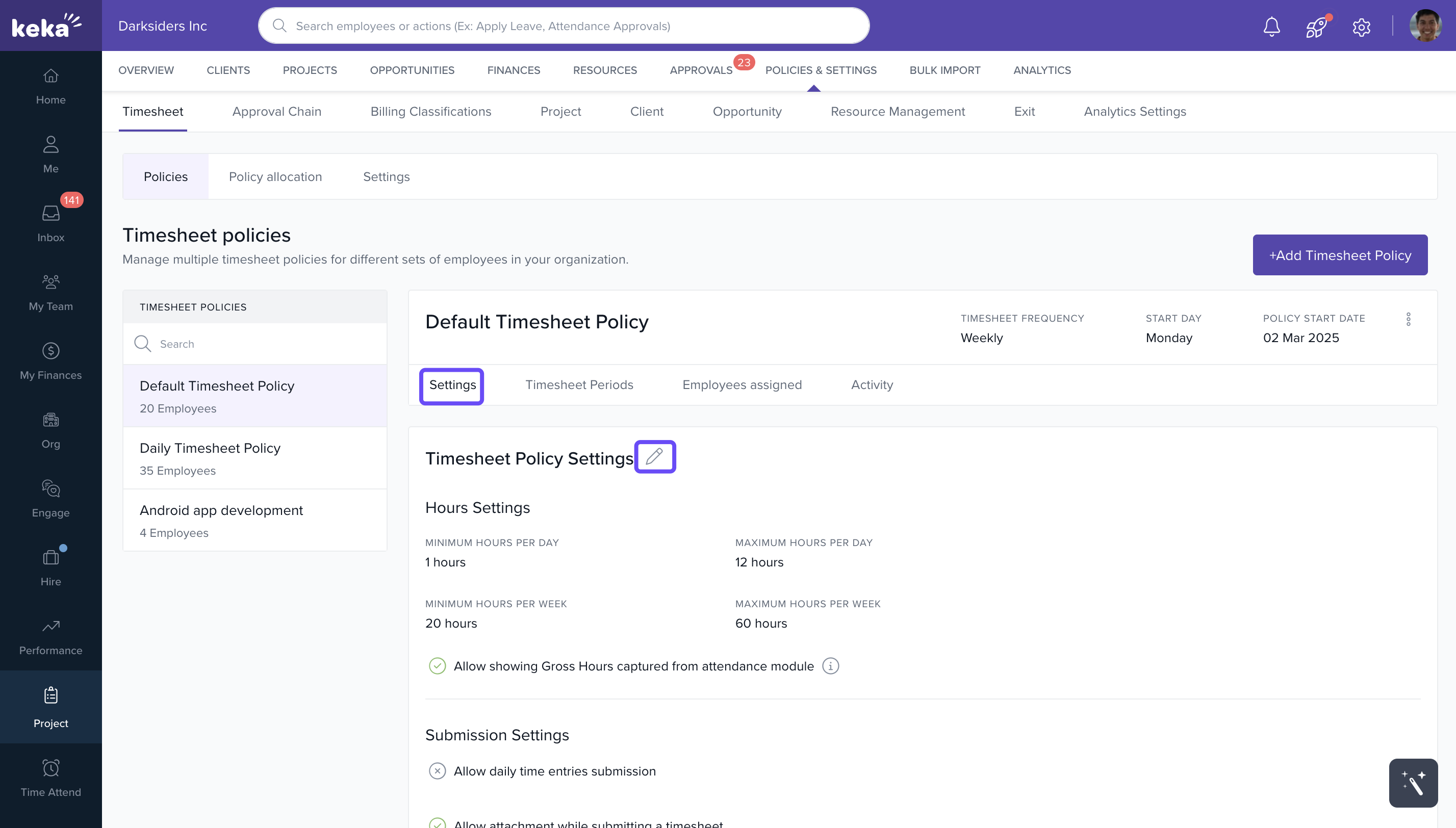 For more information on creating and managing timesheets, click here: Creating, Managing and Assigning Timesheet Policies