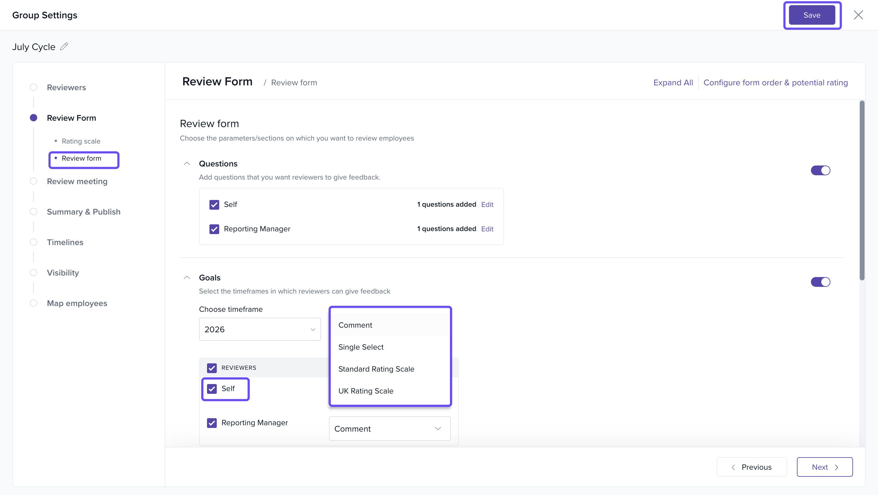 Keka gives you the flexibility to customise the response types in your review form. You can choose from: