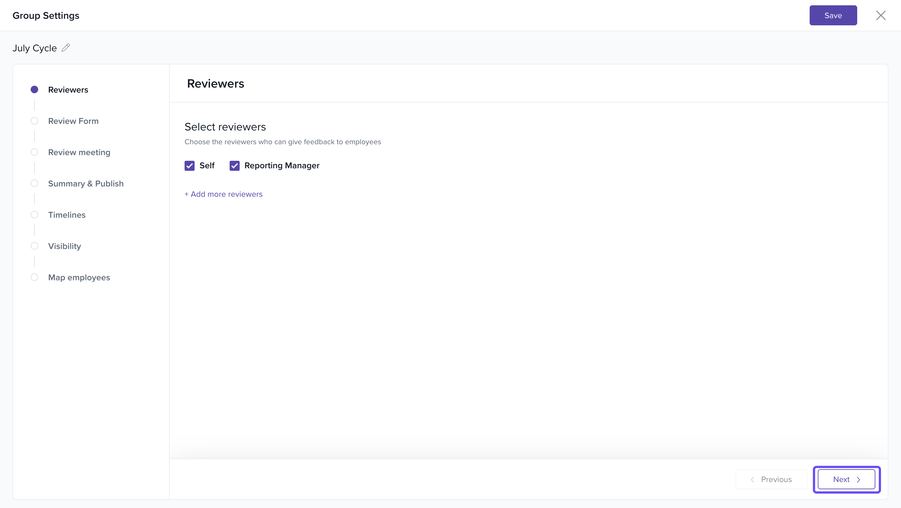 In the Select Reviewers step, make any necessary updates.