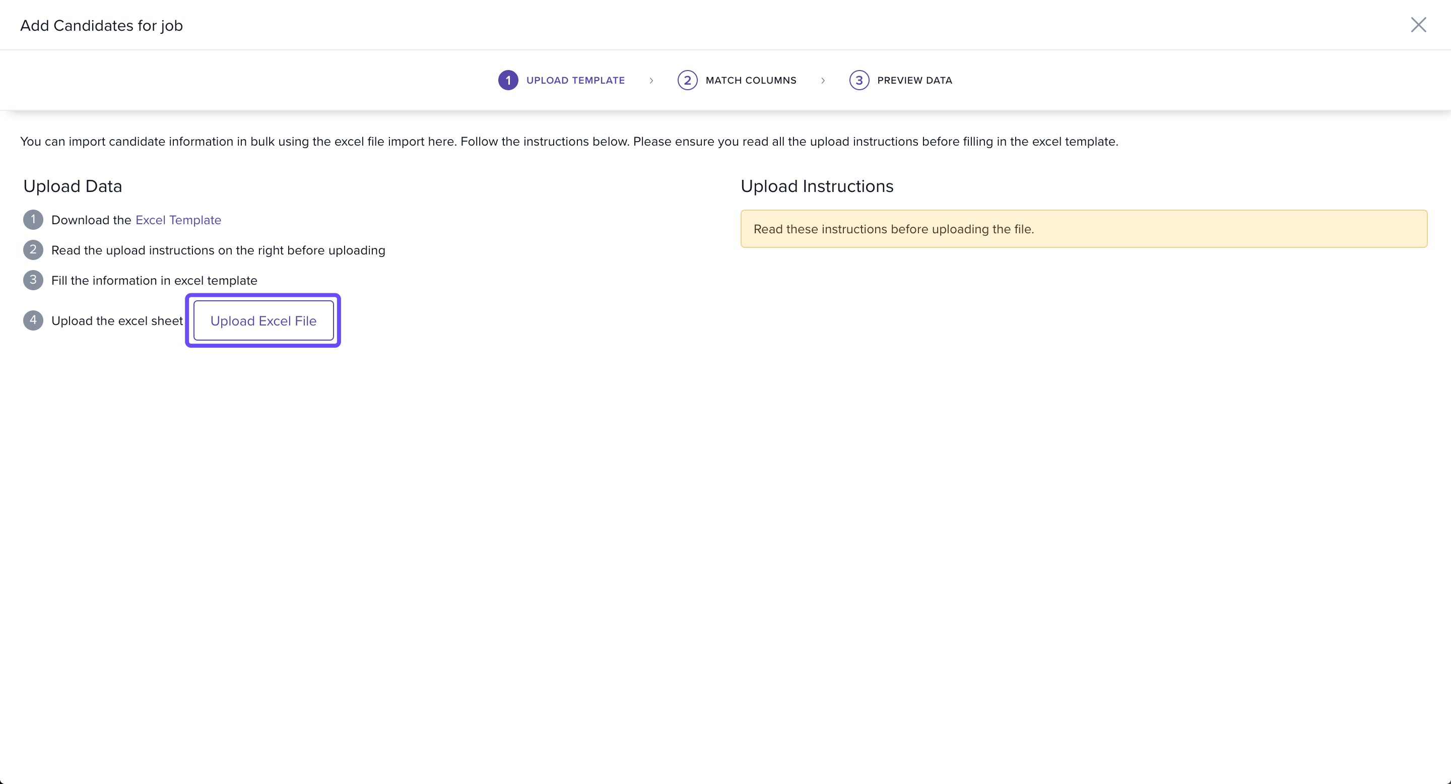 On the job page, click Add Candidate. Use the dropdown to see all available methods.