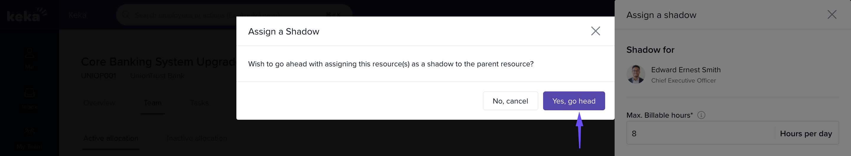 Note: You can only assign a shadow to a team member if the shadow resource has already been added to the project team.
