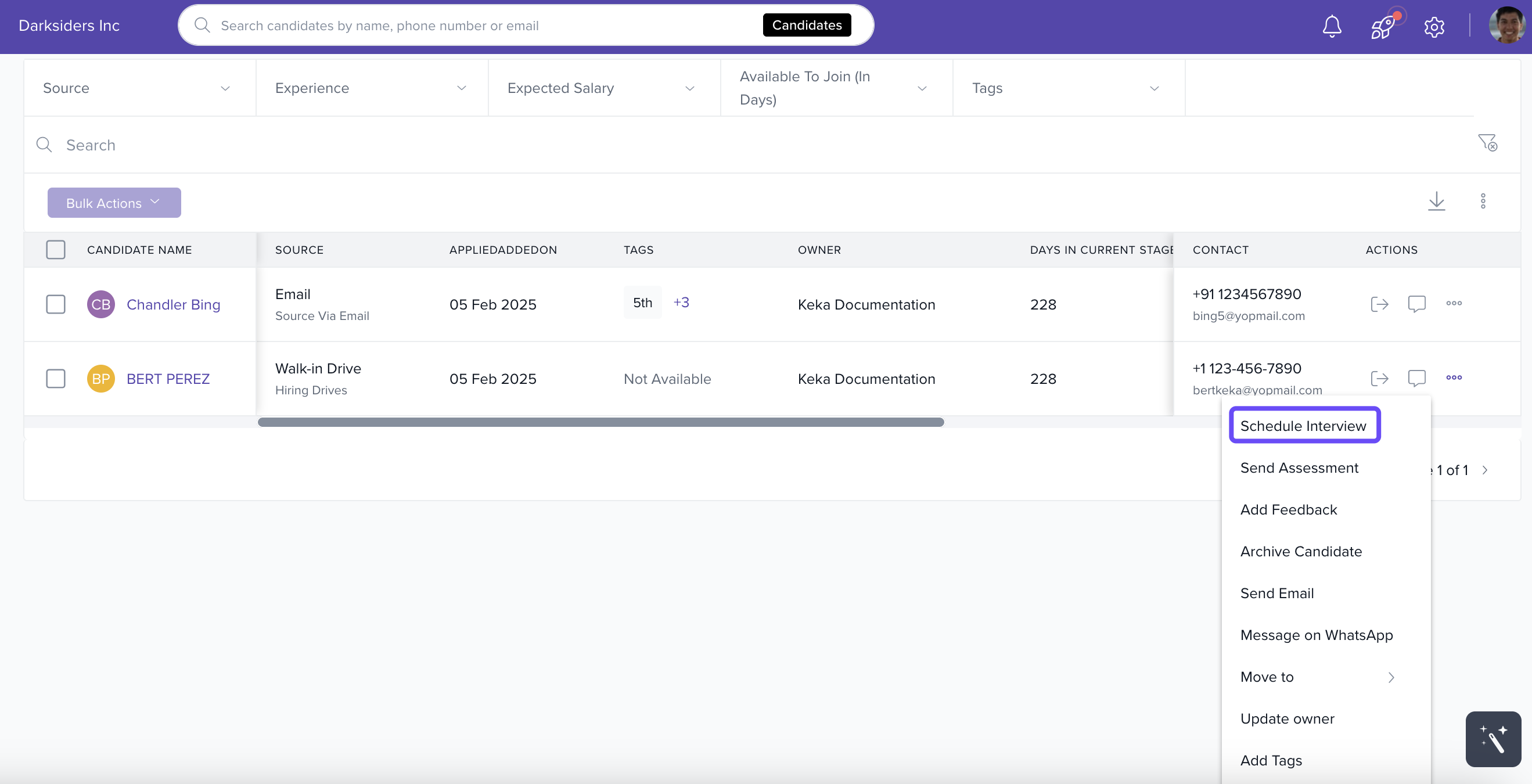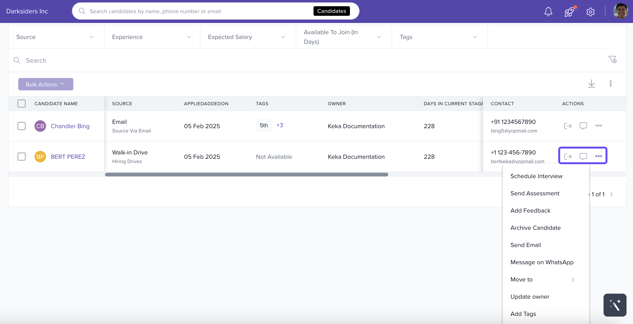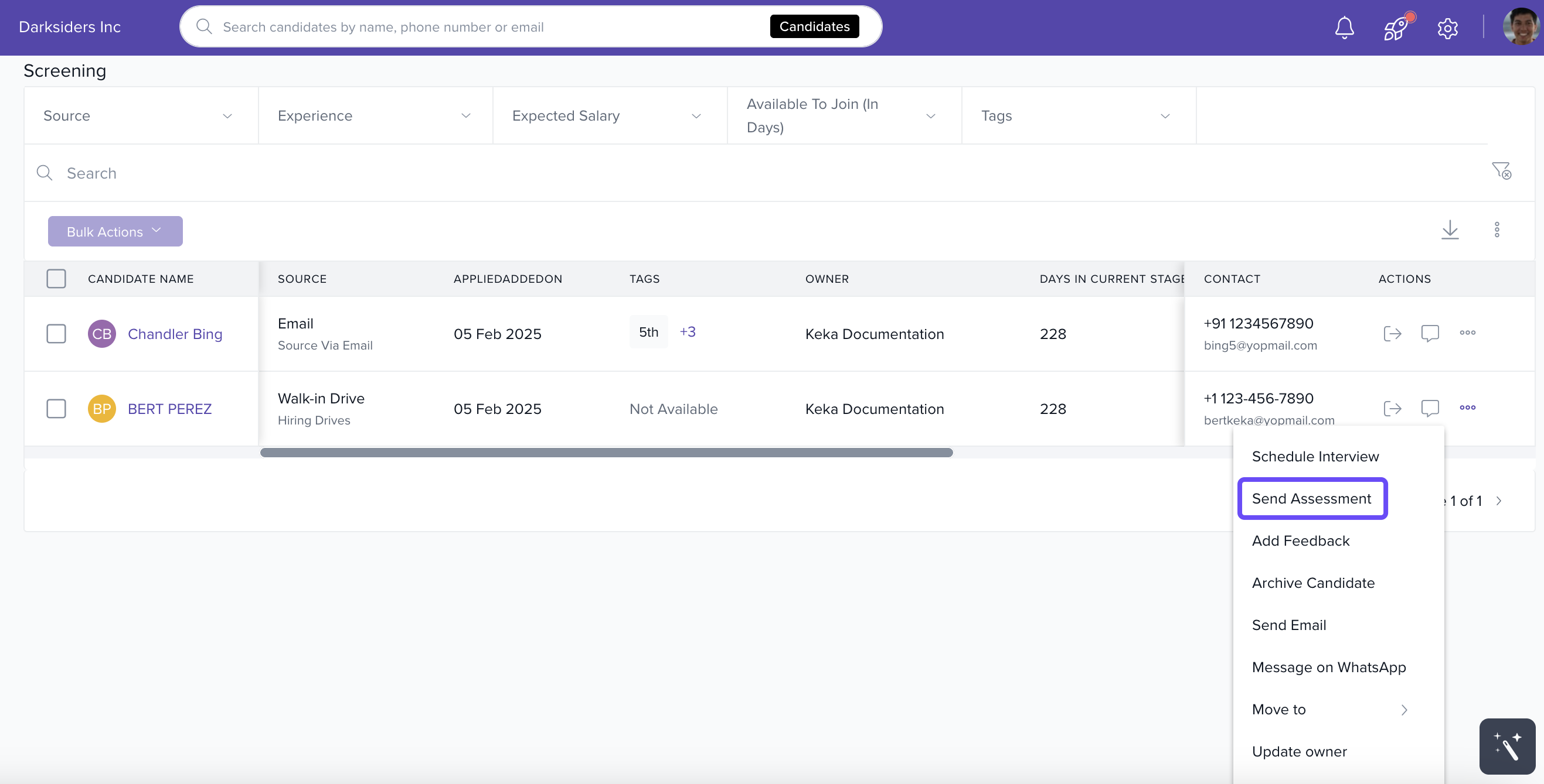 Important: Only users with the right access roles will be able to archive candidates or send assessments.