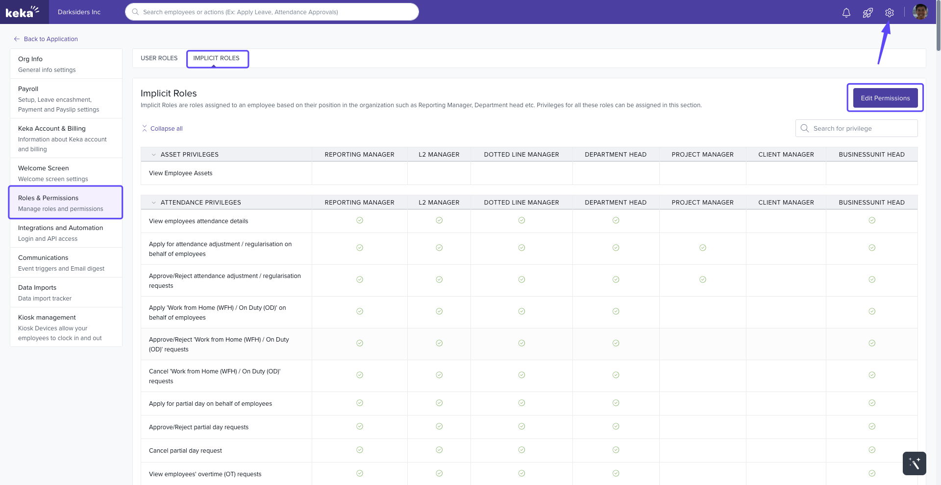 Managing what each implicit role can and cannot do is critical for maintaining security while enabling effective decision-making. In Keka, Global Admins have full control over these permissions.
