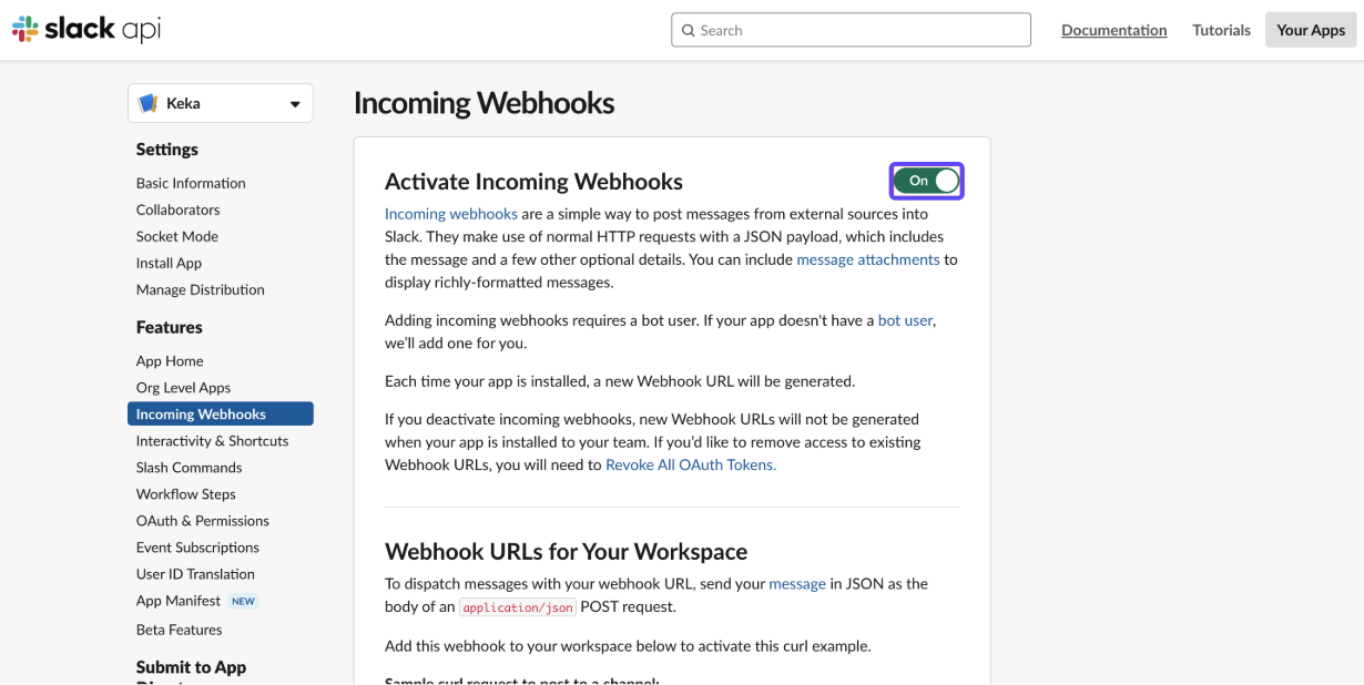 You’ve now successfully enabled incoming webhooks for your Slack app!