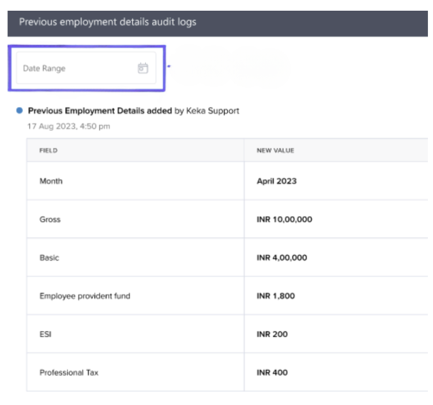 Per-employee visibility: View audit logs directly in an employee’s profile for updates to salary, declarations, component claims, loans, and more.