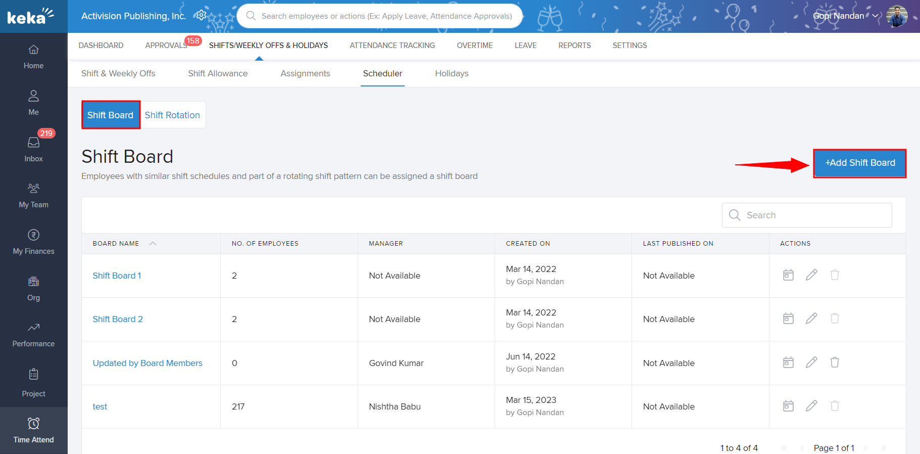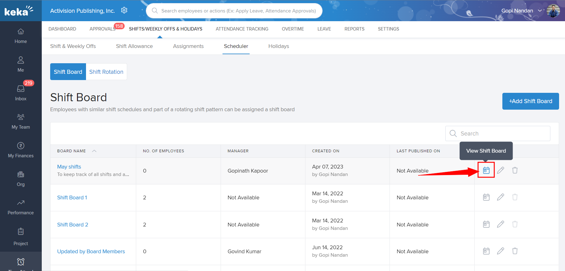 Now this shift board will be available in the list from where you can click the view shift board icon to open a new window.