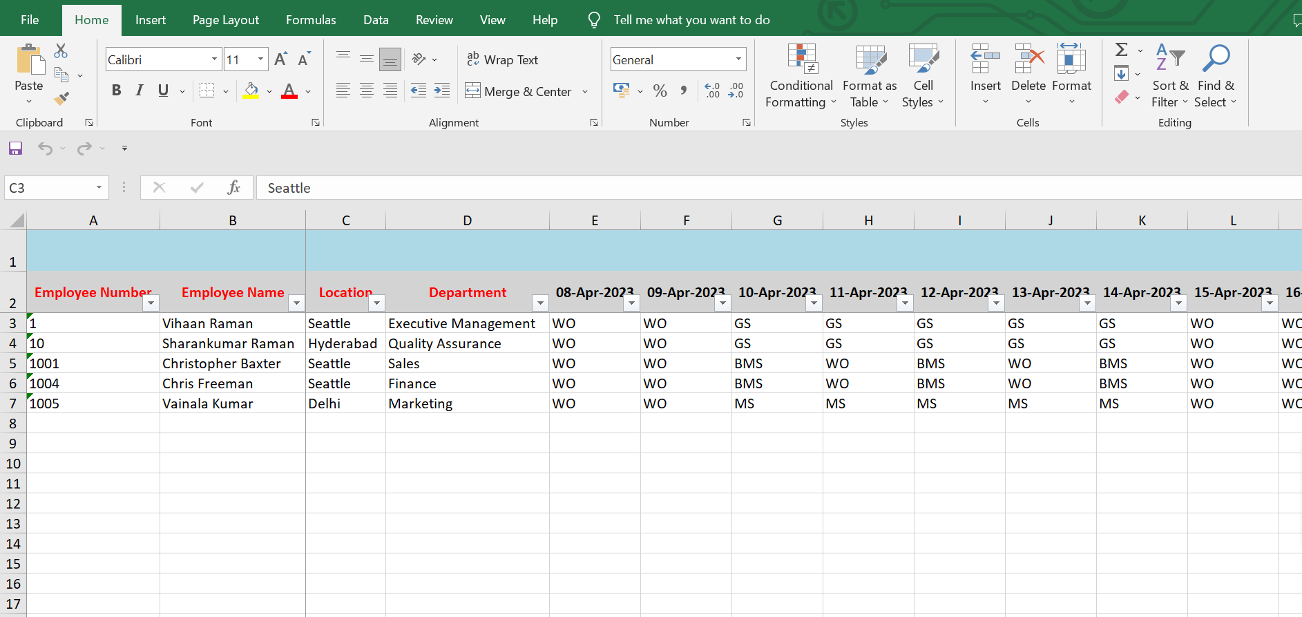 In the Excel sheet you have to use the predefined shift codes to assign shifts for each day and for assigned weekly offs use the following codes: